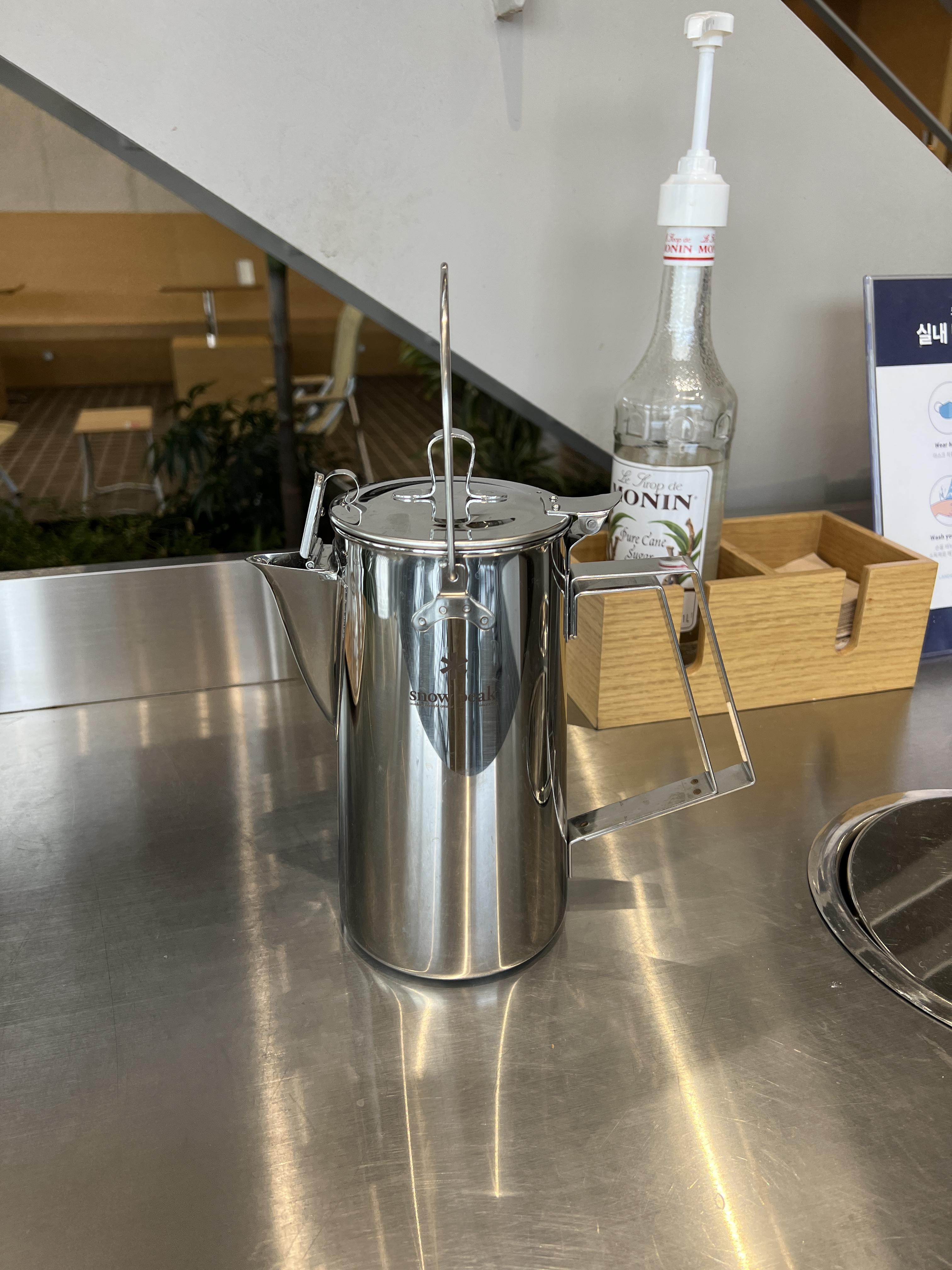 스노우피크 카페는 물주전자도 스노우피크 제품이예요. 이쁘당 😍