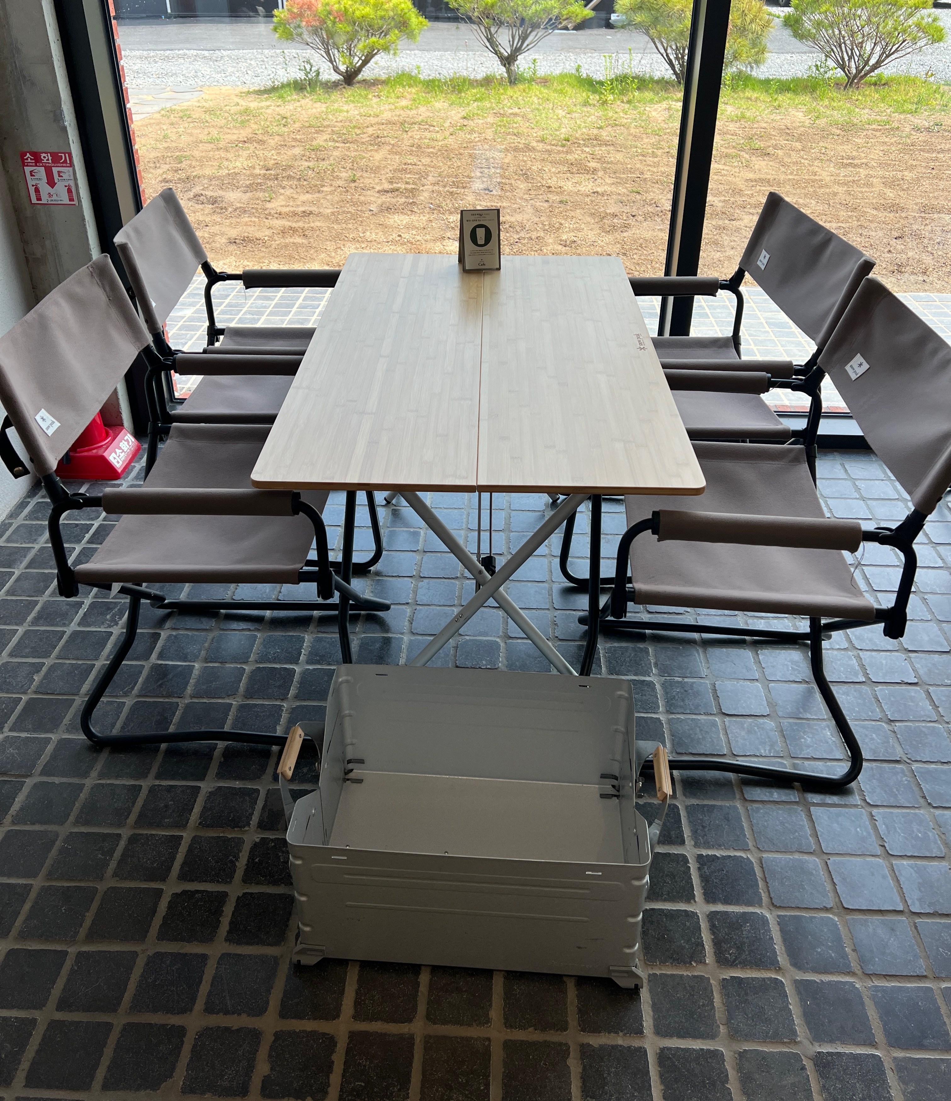 카페 테이블이랑 의자는 전부 스노우피크 제품으로 되어 있어서 직접 체험해볼 수 있더라구요.