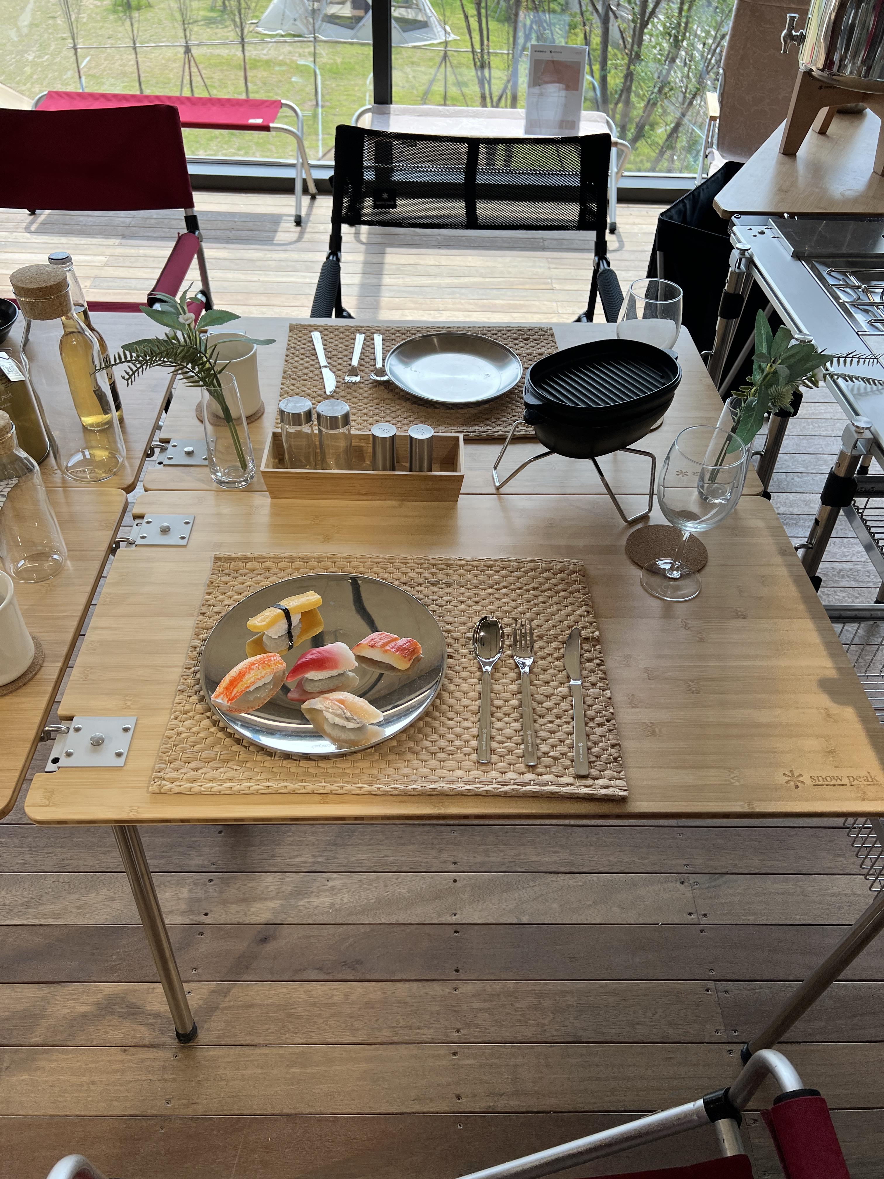 스노우피크 테이블이 신기한게 계속 연결해서 구성을 할 수 있어요.