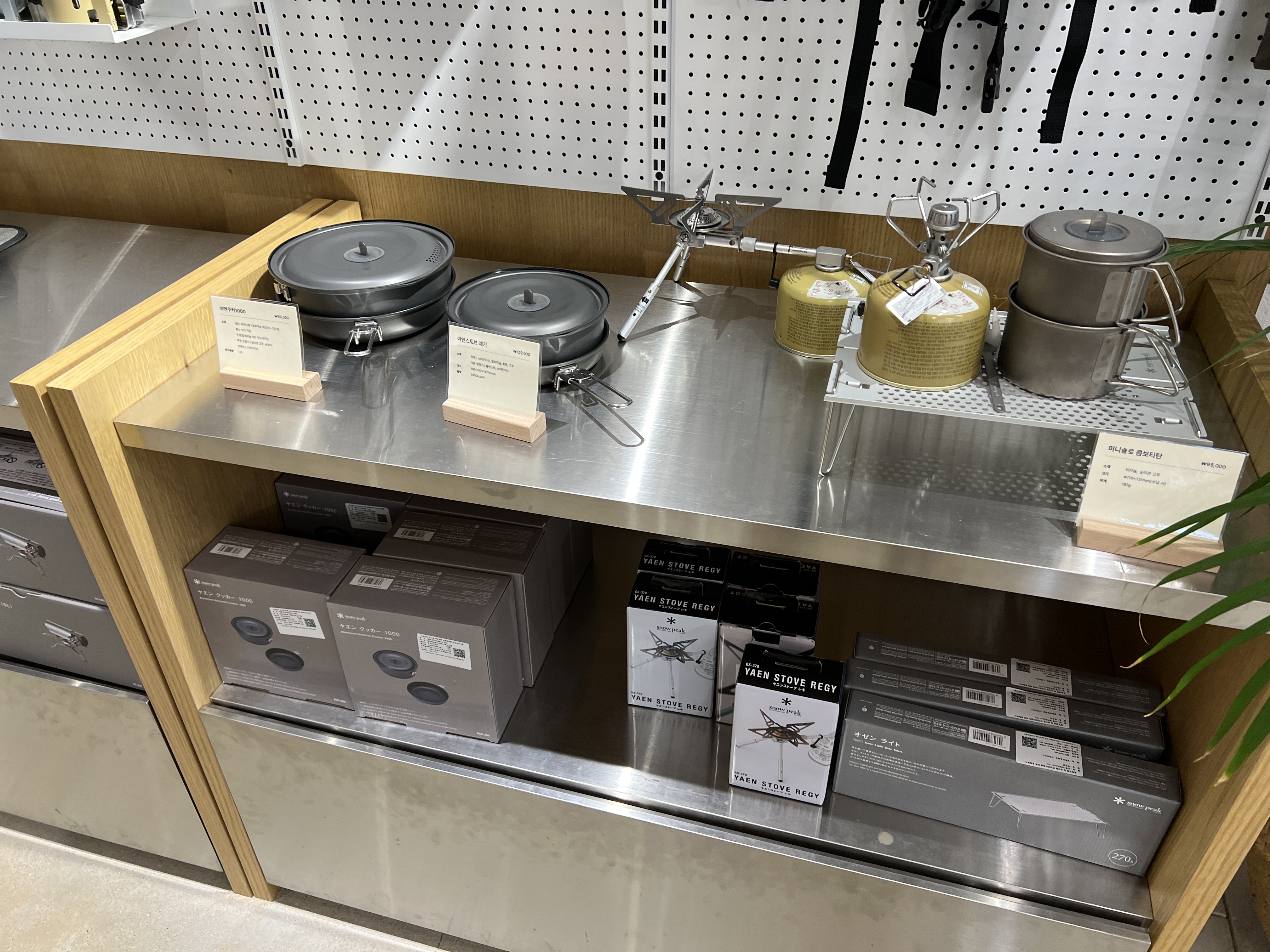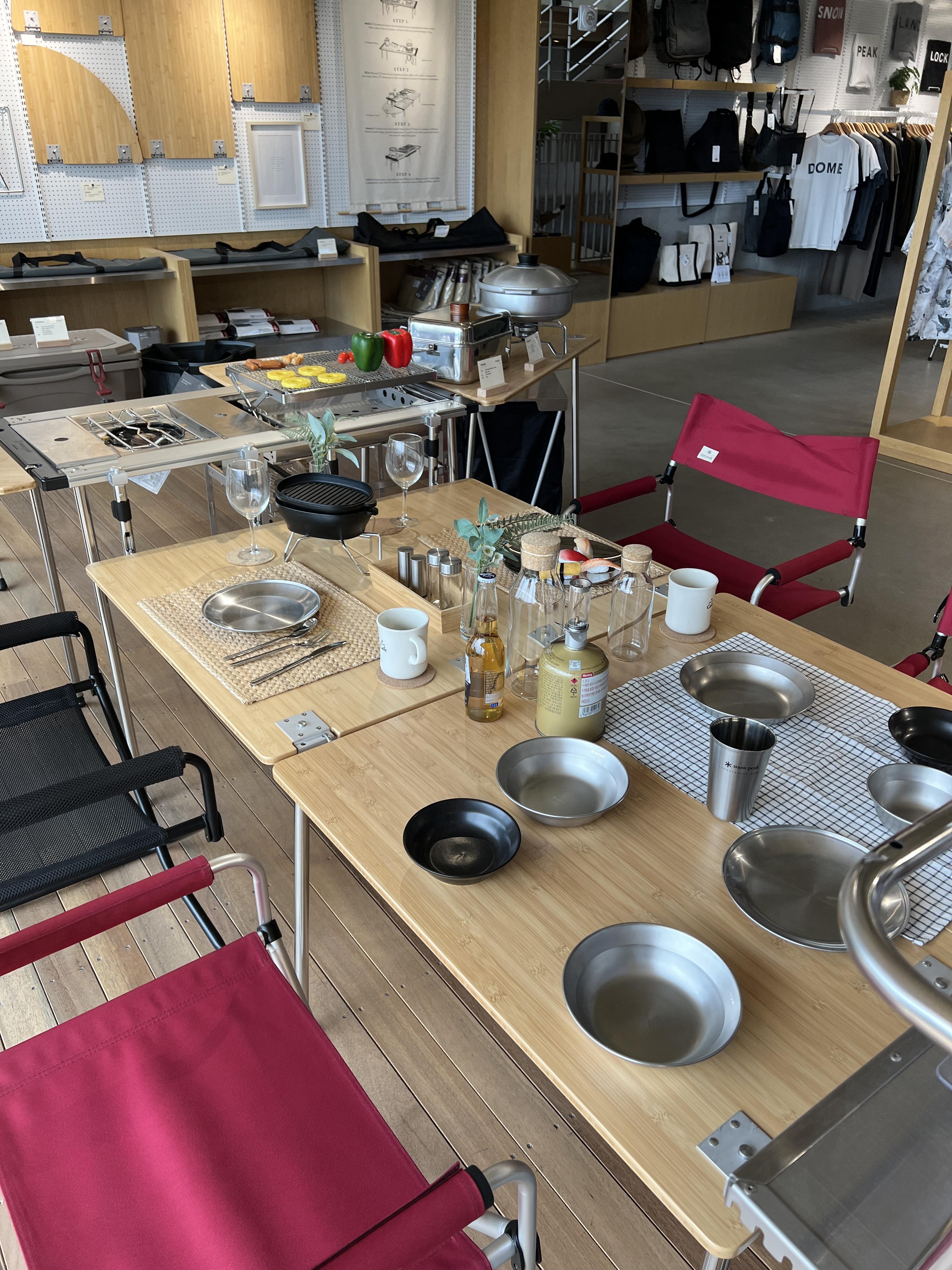 바로 구매할 수 있는 제품도 있고 구입 못하는것도 많은데 일단 눈으로 스노우피크 제품을 전부 볼 수 있어서 너무 좋았던거 같아요. 이렇게 보고 나니깐 사실 더 사고 싶지만 한번 보는게 캠핑용품 구입하는데 엄청 도움이 되는거 같아요.