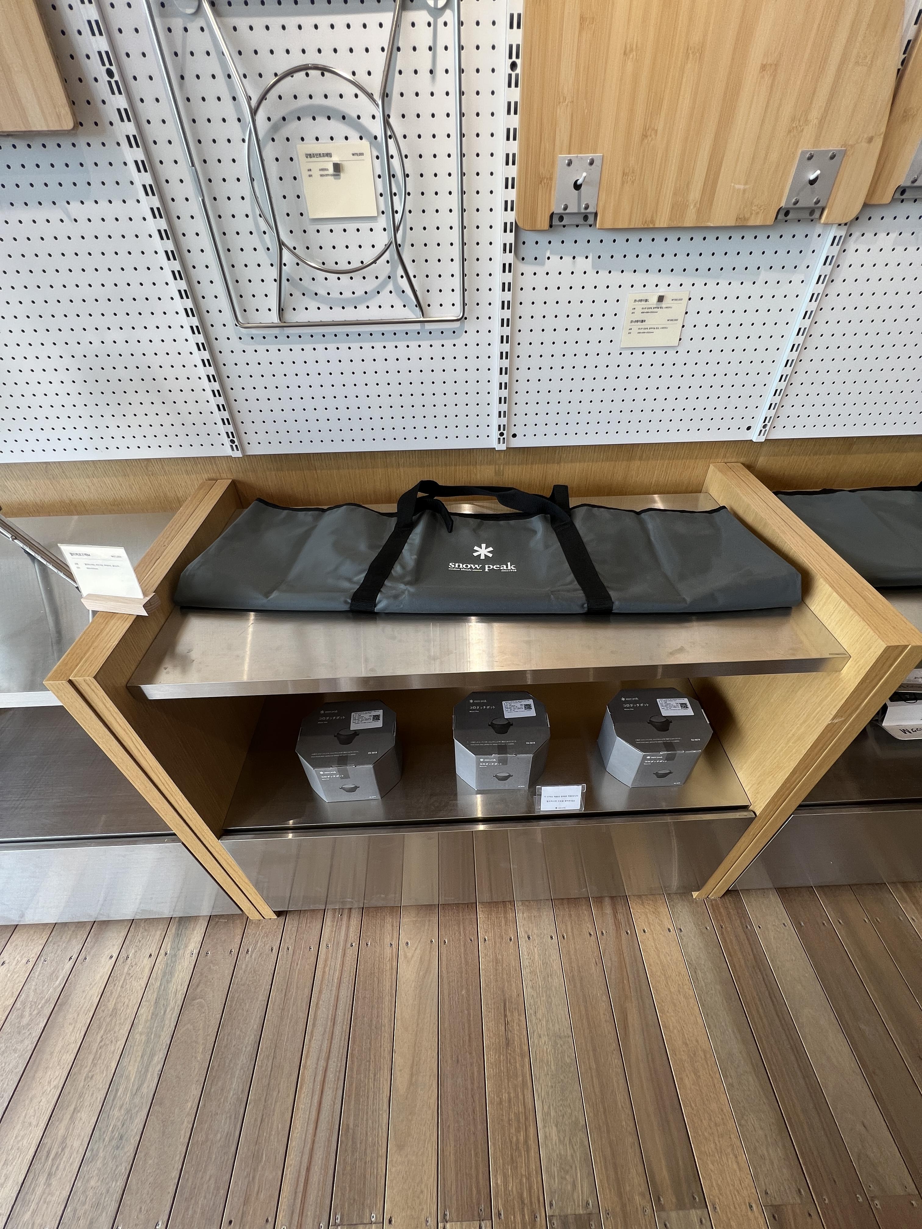 온라인으로 보던걸 실제로 보니깐 역시 느낌이 완전 다르더라구요. 캠핑을 시작할때 스노우피크 제품부터 보면 다른제품은 눈에 안들어오는것도 많아요 😅
