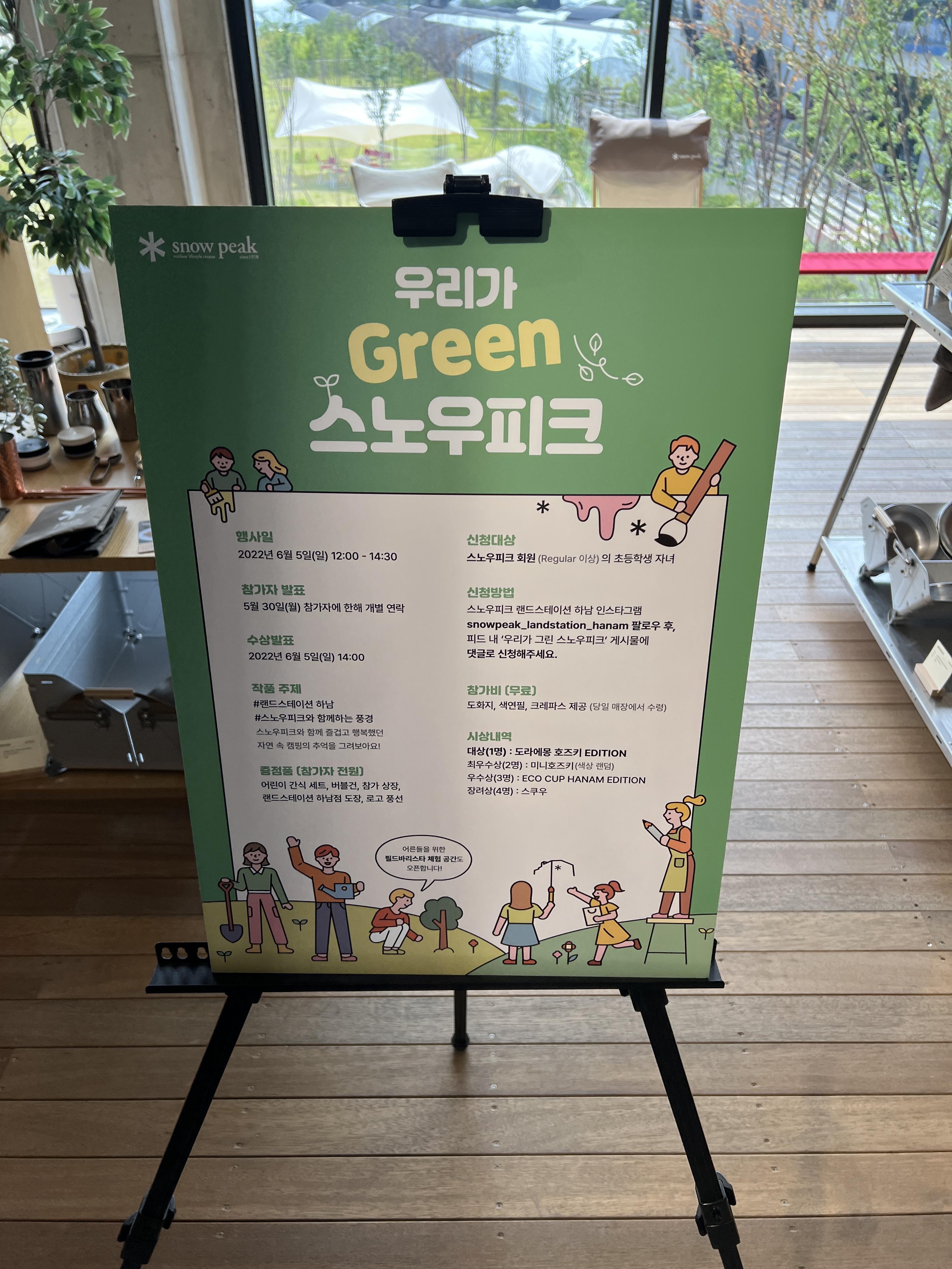 저는 5월말에 방문을 했고 6월 5일 일요일날 우리가 그린 스노우피크 행사가 있더라구요.