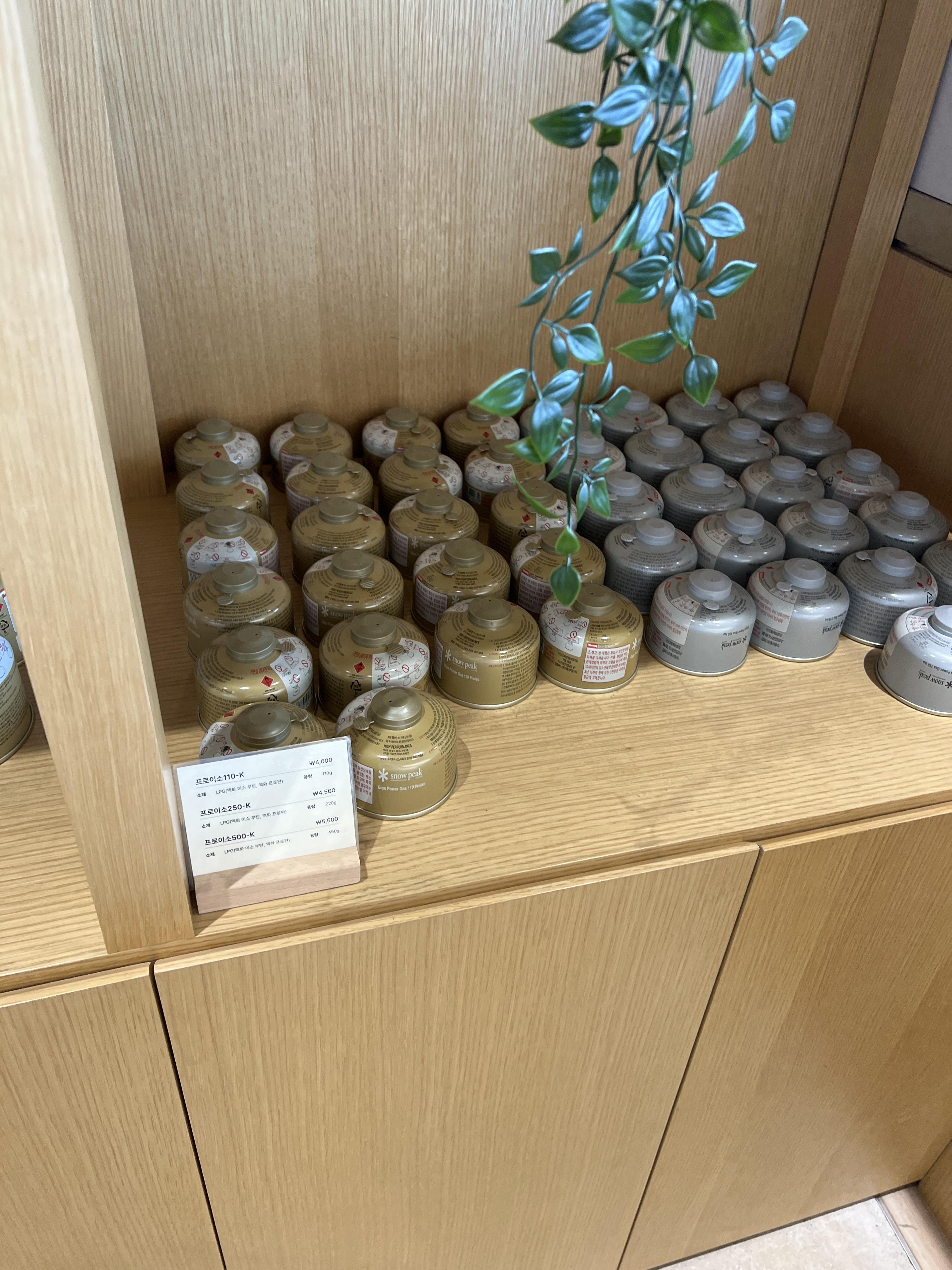 스노우피크 이소가스도 여기서는 구입 할 수 있어요. 인터넷에서는 품절인데 여기는 재고가 있더라구요.