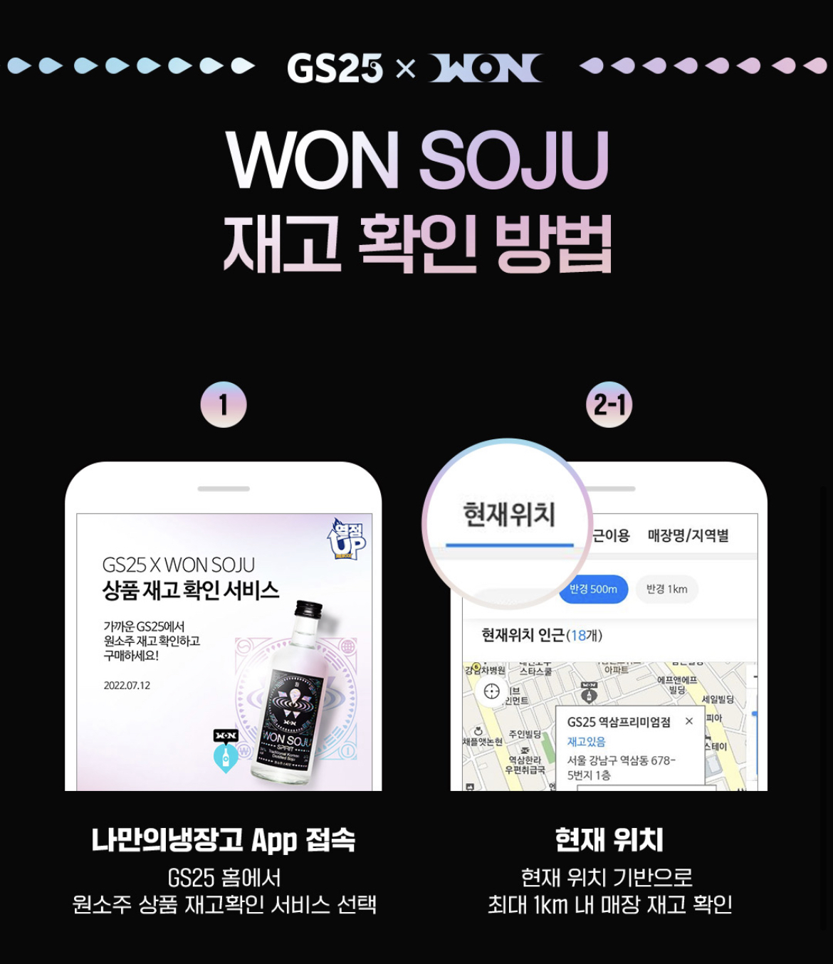오늘은 요즘 핫하게 떠오르고 있는 박재범 소주로 유명한 원소주가 GS25 편의점에 7월 12일 화요일부터 입고되서 판매가 시작 된다고 해서 확인을 해보니깐 재고 조회도 된다고 해서 자세히 살펴 볼려고 해요.