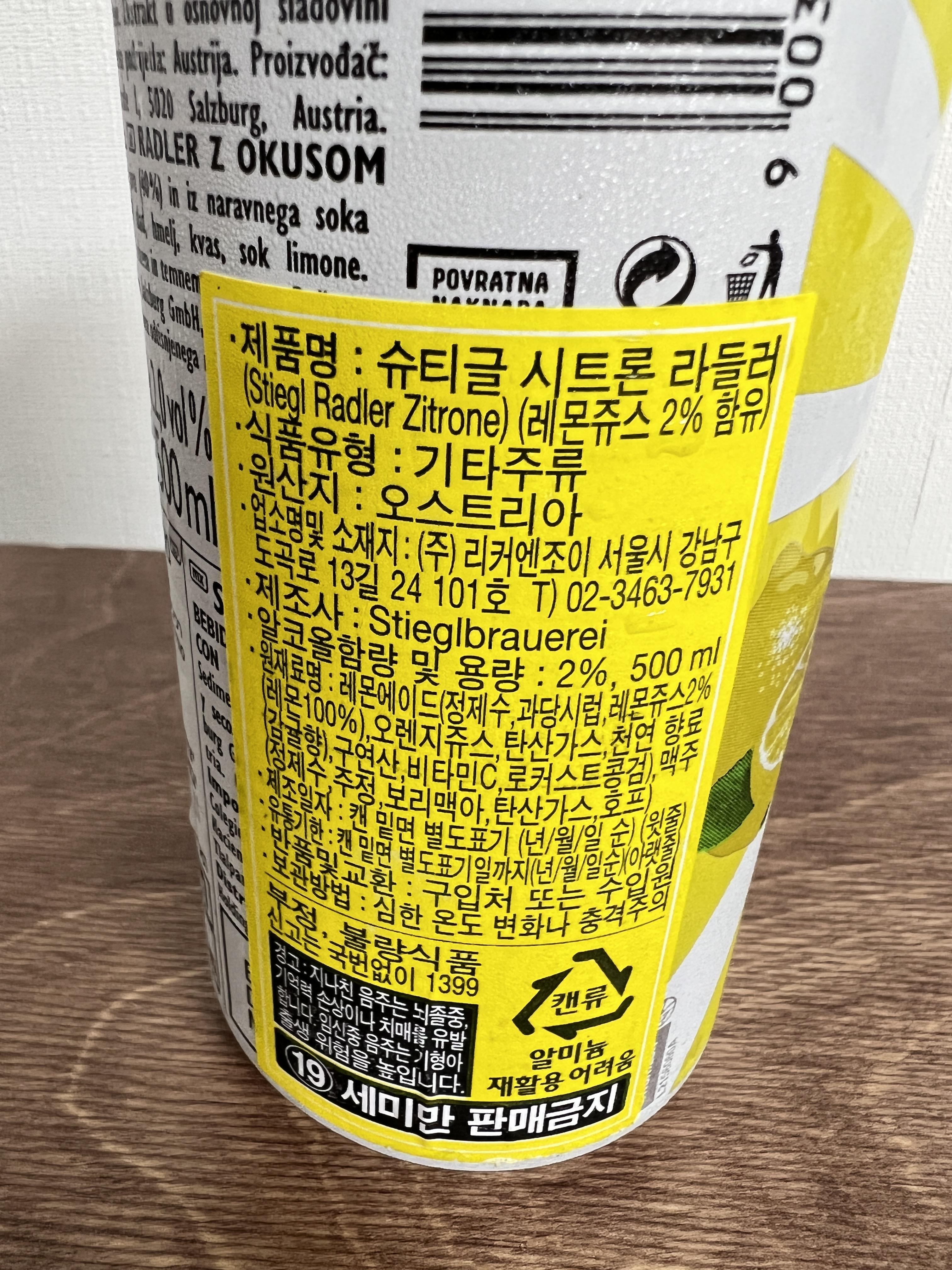 제품명: 슈티글 시트론 라들러 (Stiegl Radler Zitrone) 🍻