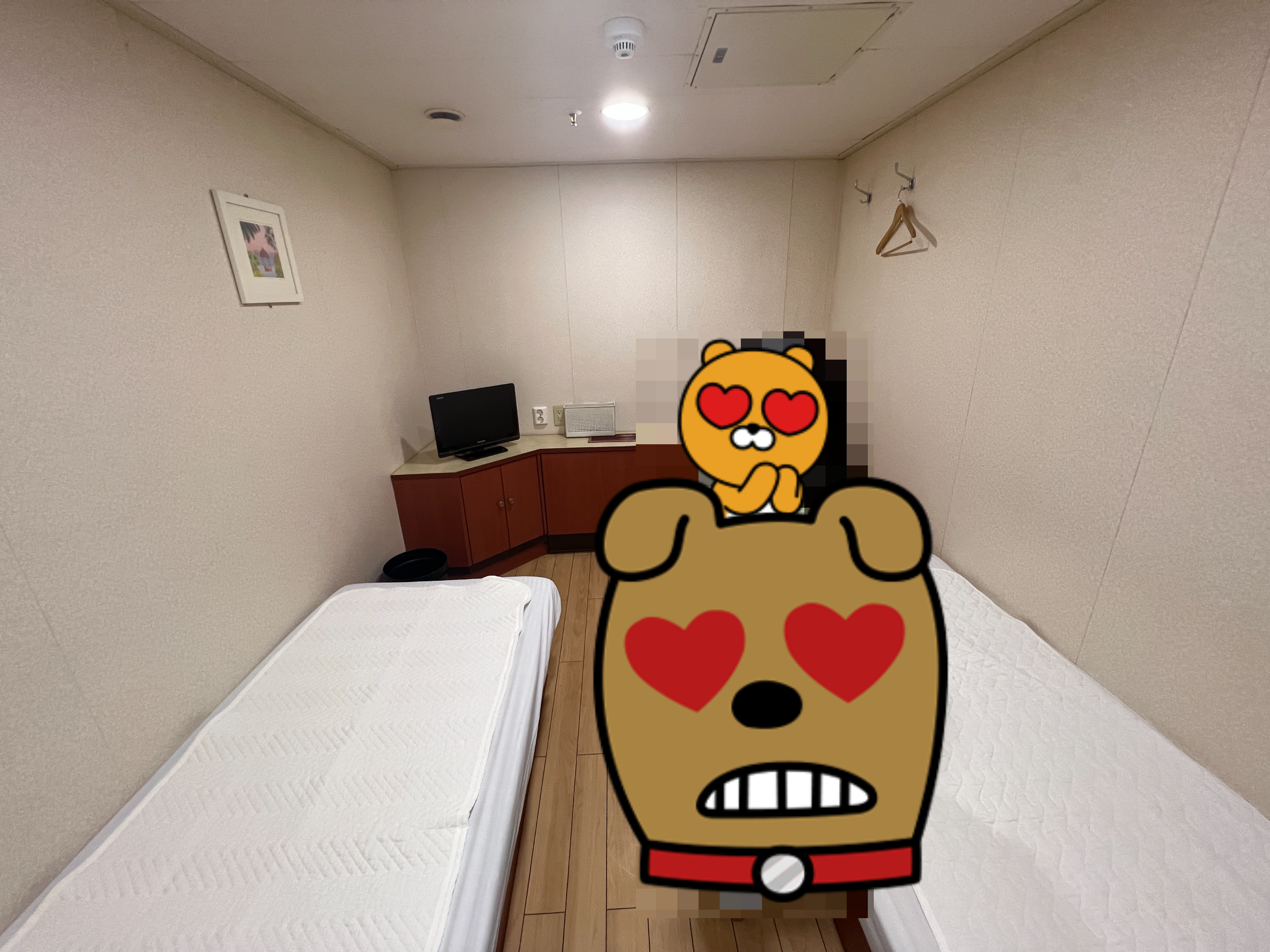 싼것도 좋지만 배에선 일단 편한게 제일 좋은거 같아요. 처음 경험할땐 멋도 모르고 그냥 싼걸 했는데 이번엔 한번 경험을 하고 나니깐 진짜 비싸도 편한게 최고더라구요. 여러사람이 모여서 있는 공간에서는 조심해야되는게 너무 많고 많이 힘들었거든요. 그래서 이번엔 무조건 좁아도 방으로 예약 했어요.