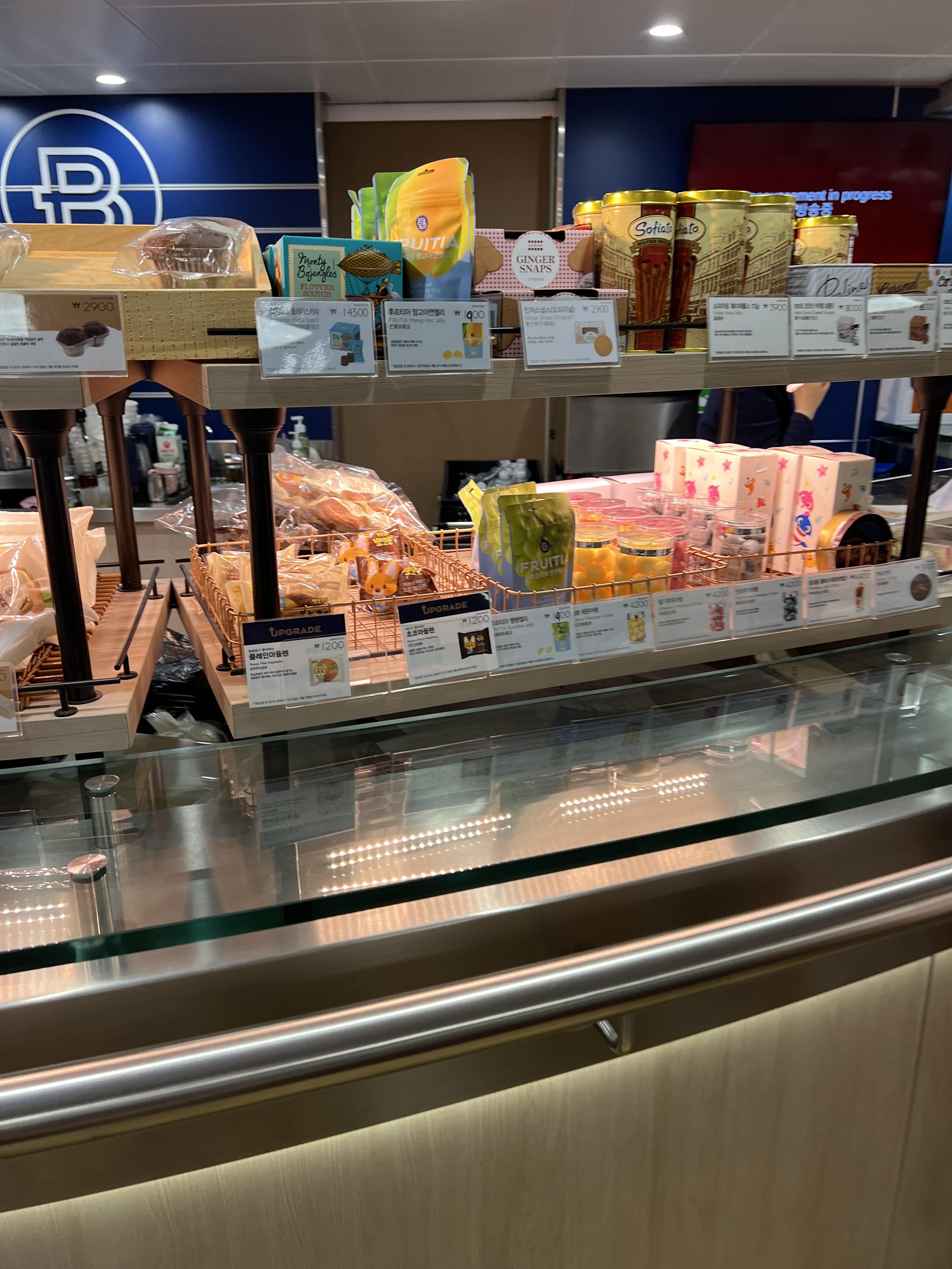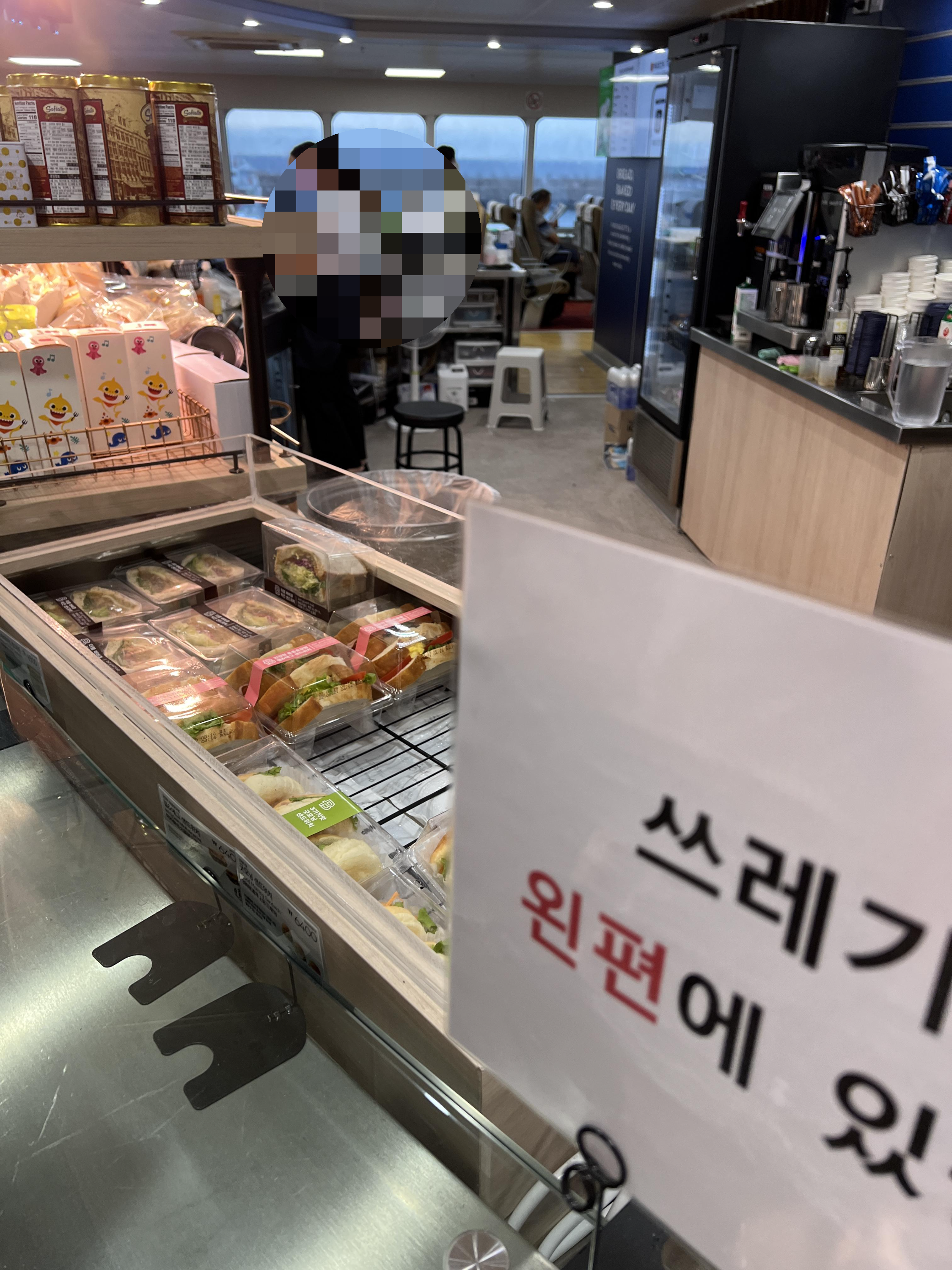 산타모니카 중간엔 이렇게 파리바게트가 있어서 빵을 구입할수도 있고 샌드위치, 커피 음료도 먹을 수 있어요. 근데 이 파라바게트 바로 앞자리가 바로 이코노미 좌석이 있어서 잘못 좌석을 선택하면 파리바게트뷰로 2시간을 가야 하는거죠.