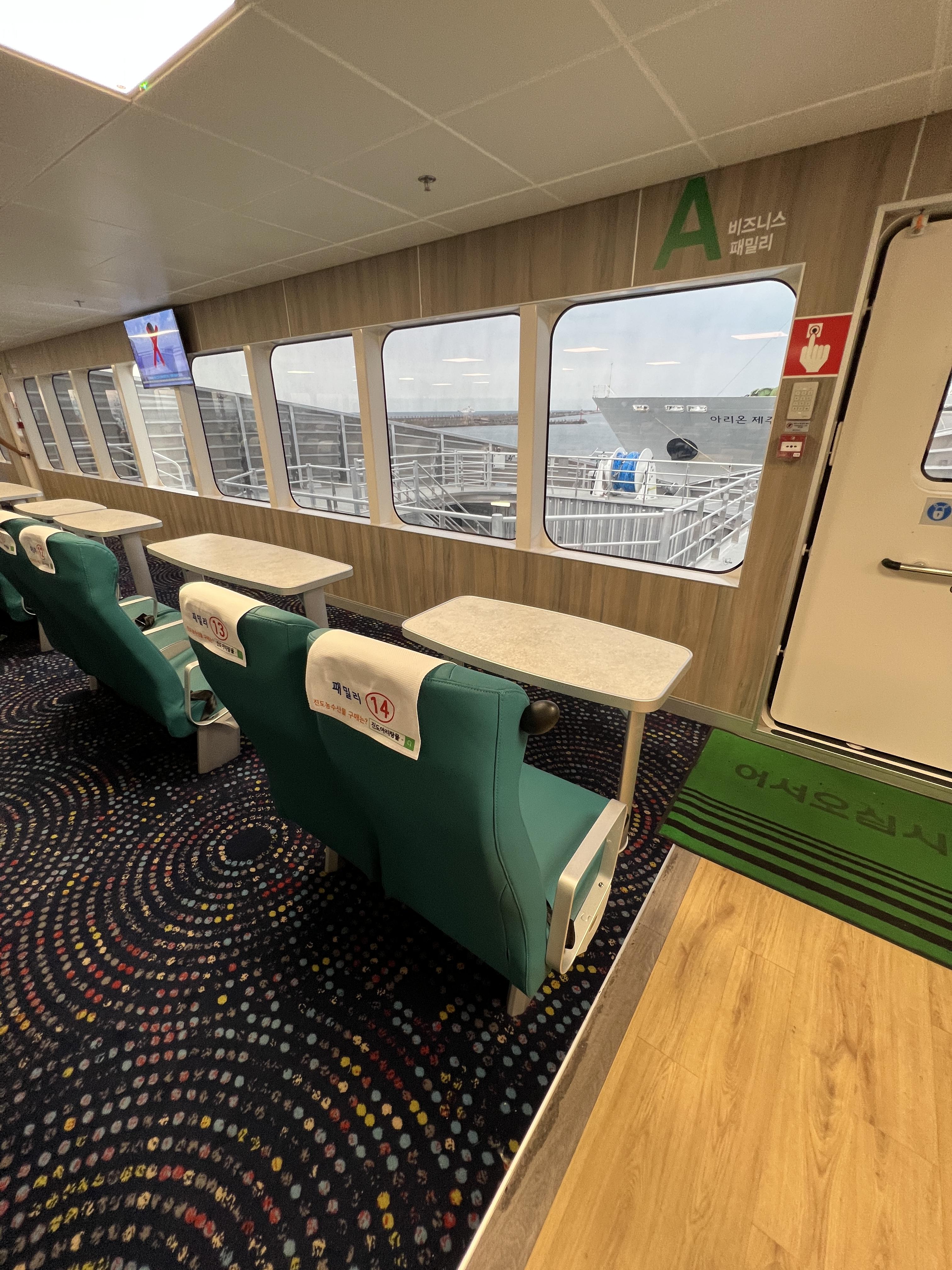 5시간 가는 배도 아니고 2시간 가는 배에서 객실이 없기 때문에 제일 안좋은 이코노미를 해도 전혀 문제가 없어요. 꼭 비싼돈주고 나는 더 좋은 오션뷰를 보고 좋은 자리를 할거야 하시면 비지니스 좌석이나 패밀리석으로 하면 될 거 같고 그게 아니라 그냥 나는 제일 싼 가격에 가고 싶다면 이코노미로 하시면 하시는걸 추천드려요.