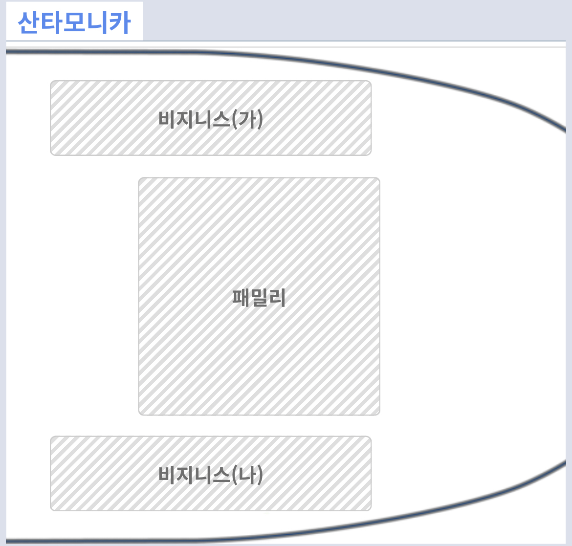 산타모니카 사전 좌석 선택 알람이 왔을때 어디가 어떤 좌석인지 전혀 몰랐는데 배를 한번 이렇게 이용해보니깐 좌석에 대한 이해를 하게 되더라구요. 블로그나 후기에 보면 좌석 등급에 너무 연연하지말라고 적혀 있는데 무슨말인지 바로 이해가 됐어요.