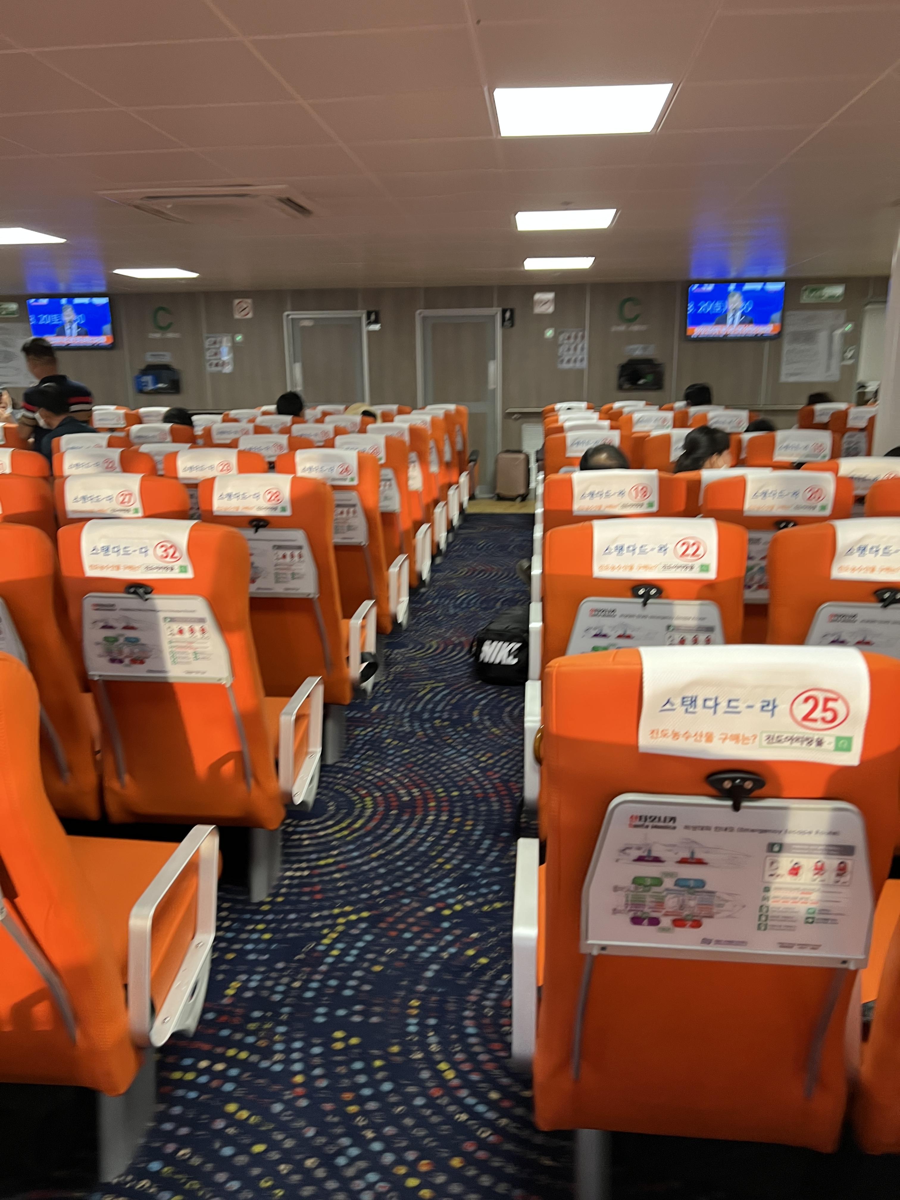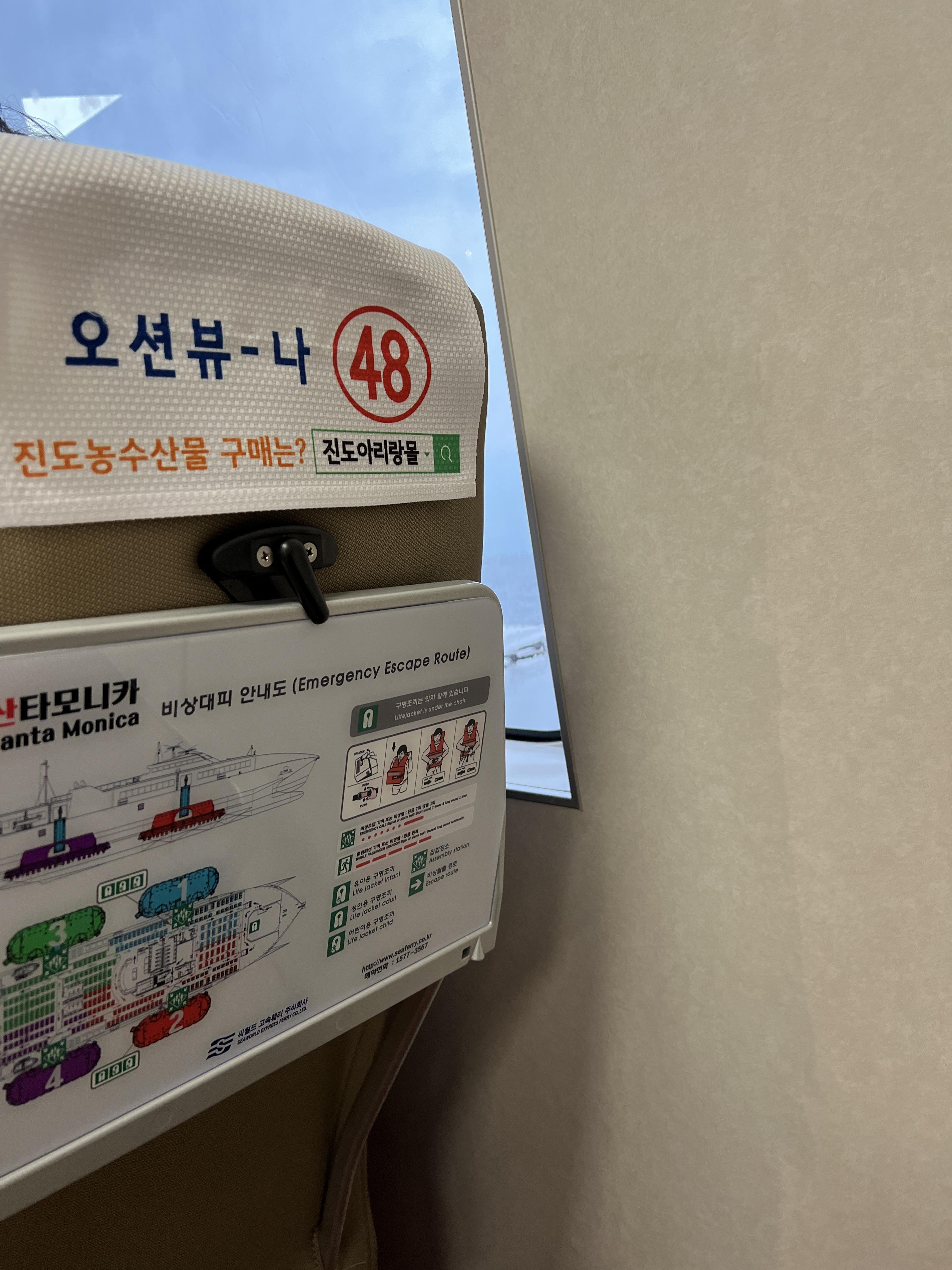 일단 사전에 너무 준비 없이 배를 예매 했는데 다음날 출항이라서 바로 사전 좌석 선택을 하라고 카톡 알람이랑 문자가 오더라구요. 어딜 선택해야할지 고민도 못하고 그냥 선택을 했는데 문제는 변경이 안되요 ㅠㅠ