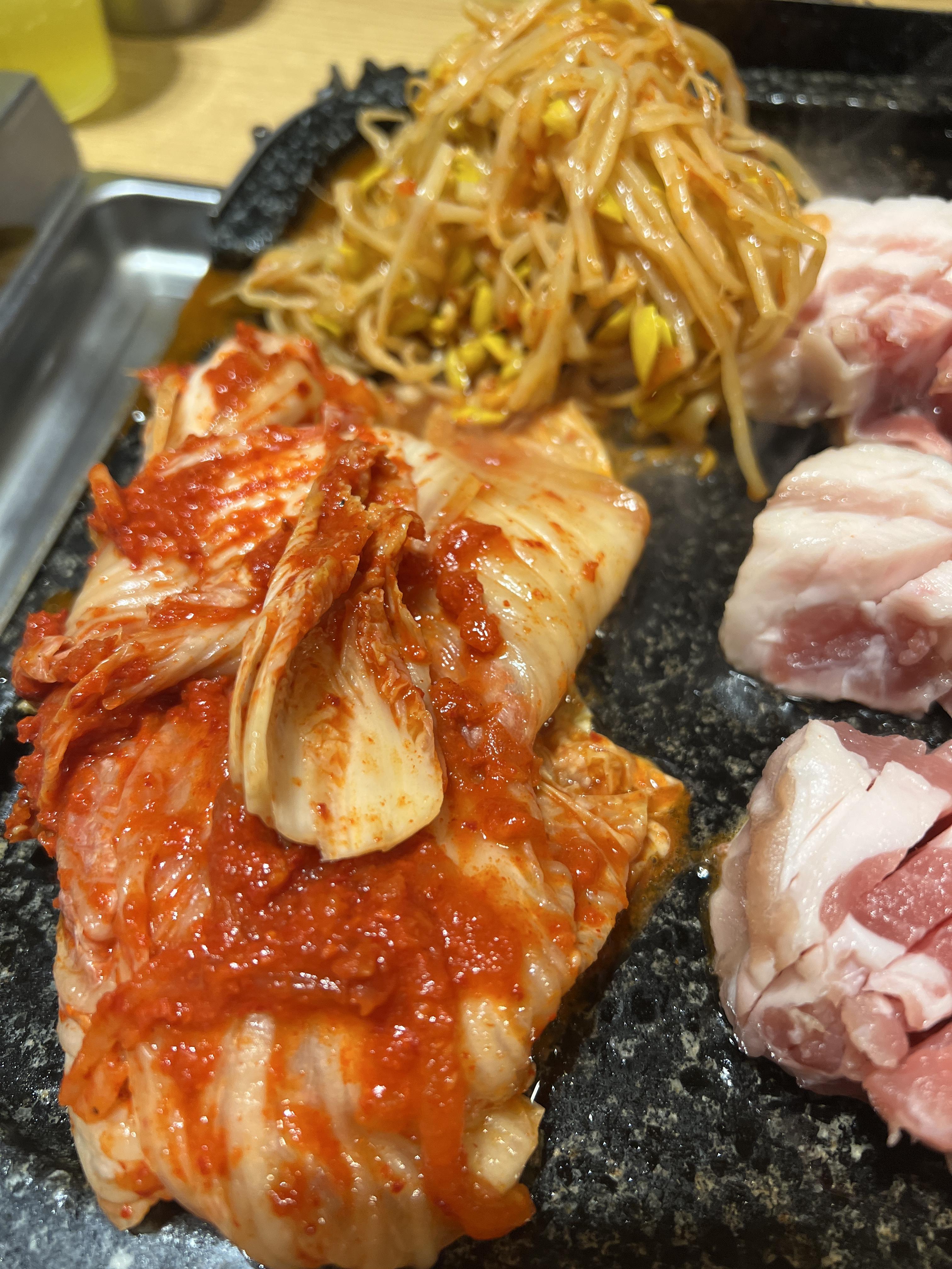 가게가 안바쁘면 직접 구워주시는데 제가 방문한날은 바빠서 잘 신경을 못써주시더라구요. 직접 요리저리 해서 구웠어요. 돌판이라서 나중에 볶음밥 생각이 간절하더라구요 ㅋㅋㅋ