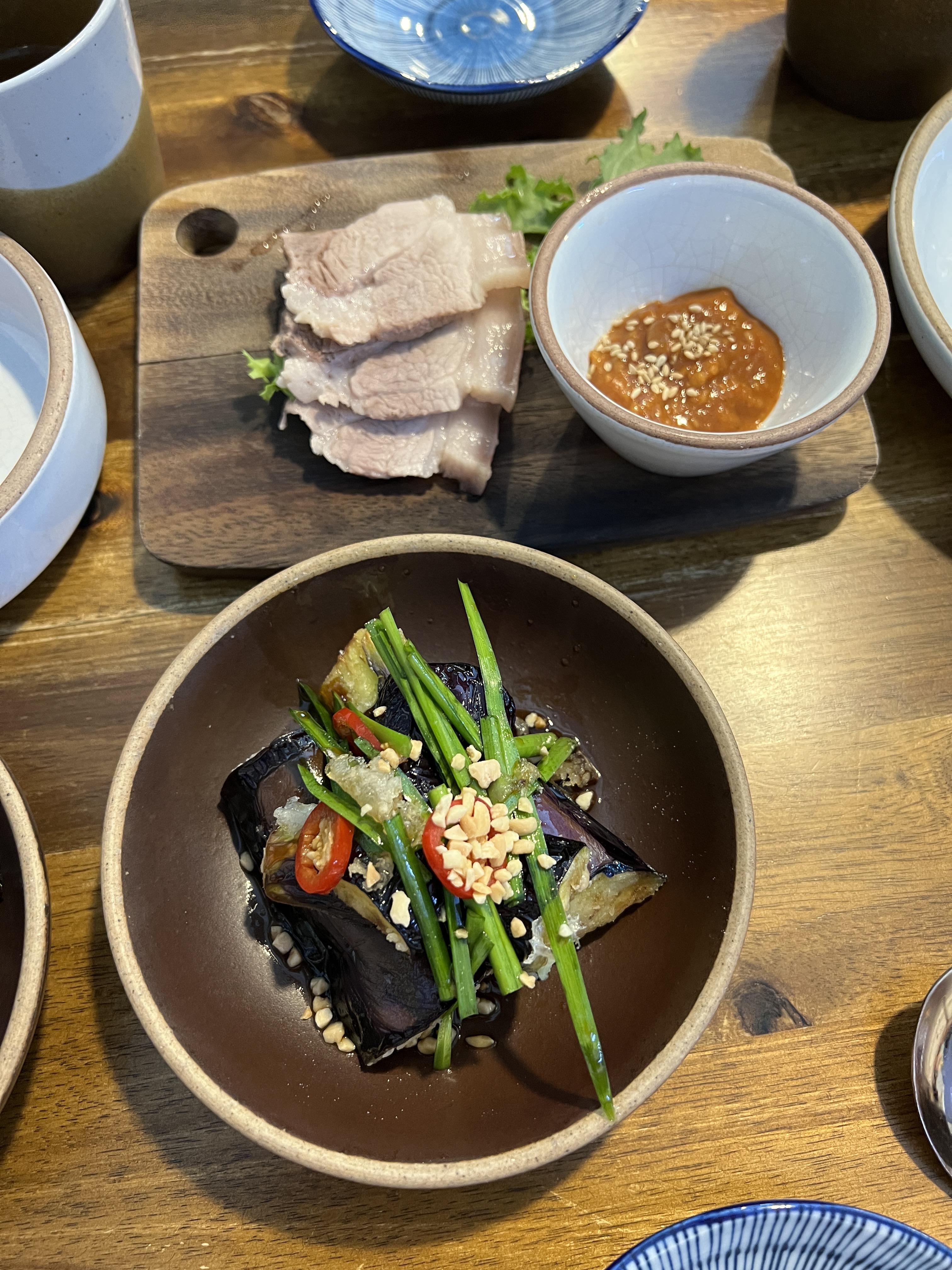 이게 5,000원 추가 하면 나오는 돔베고기랑 가지튀김이 나오는데 진짜 맛있어요.
