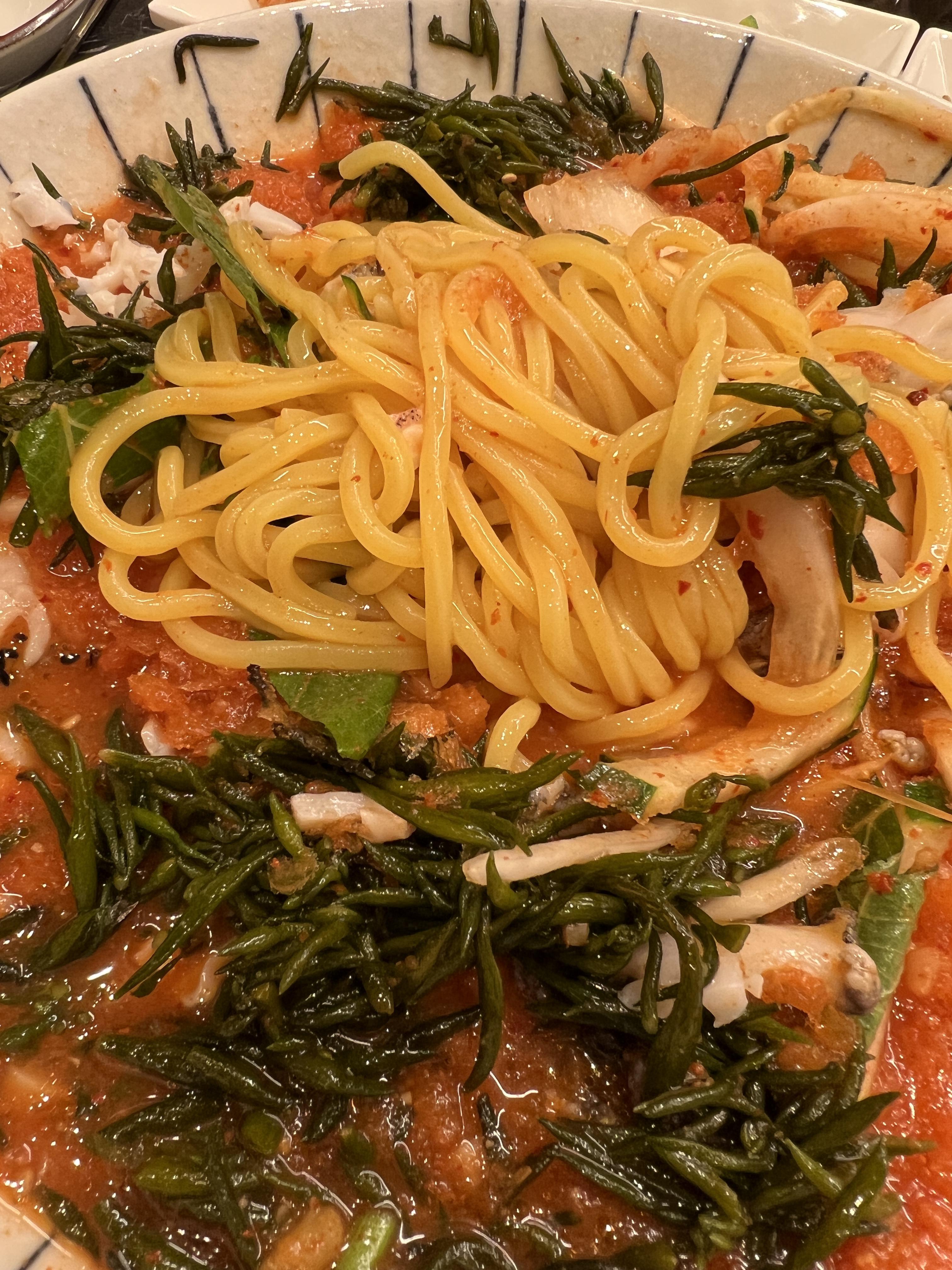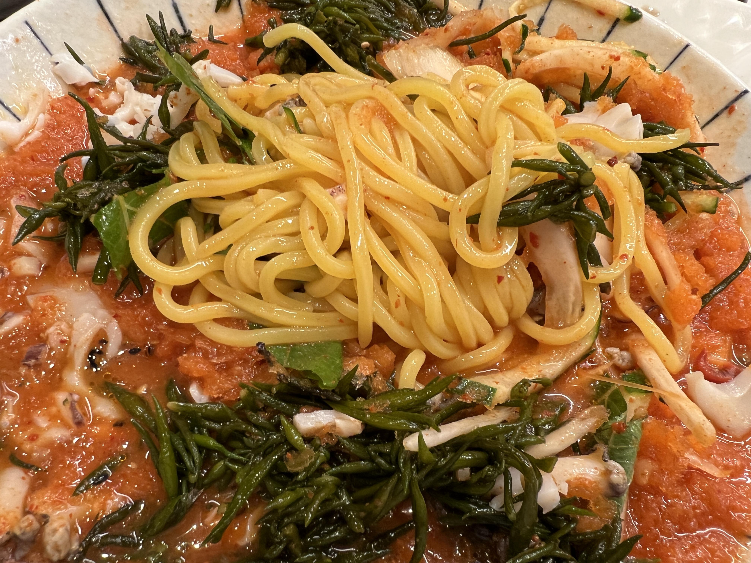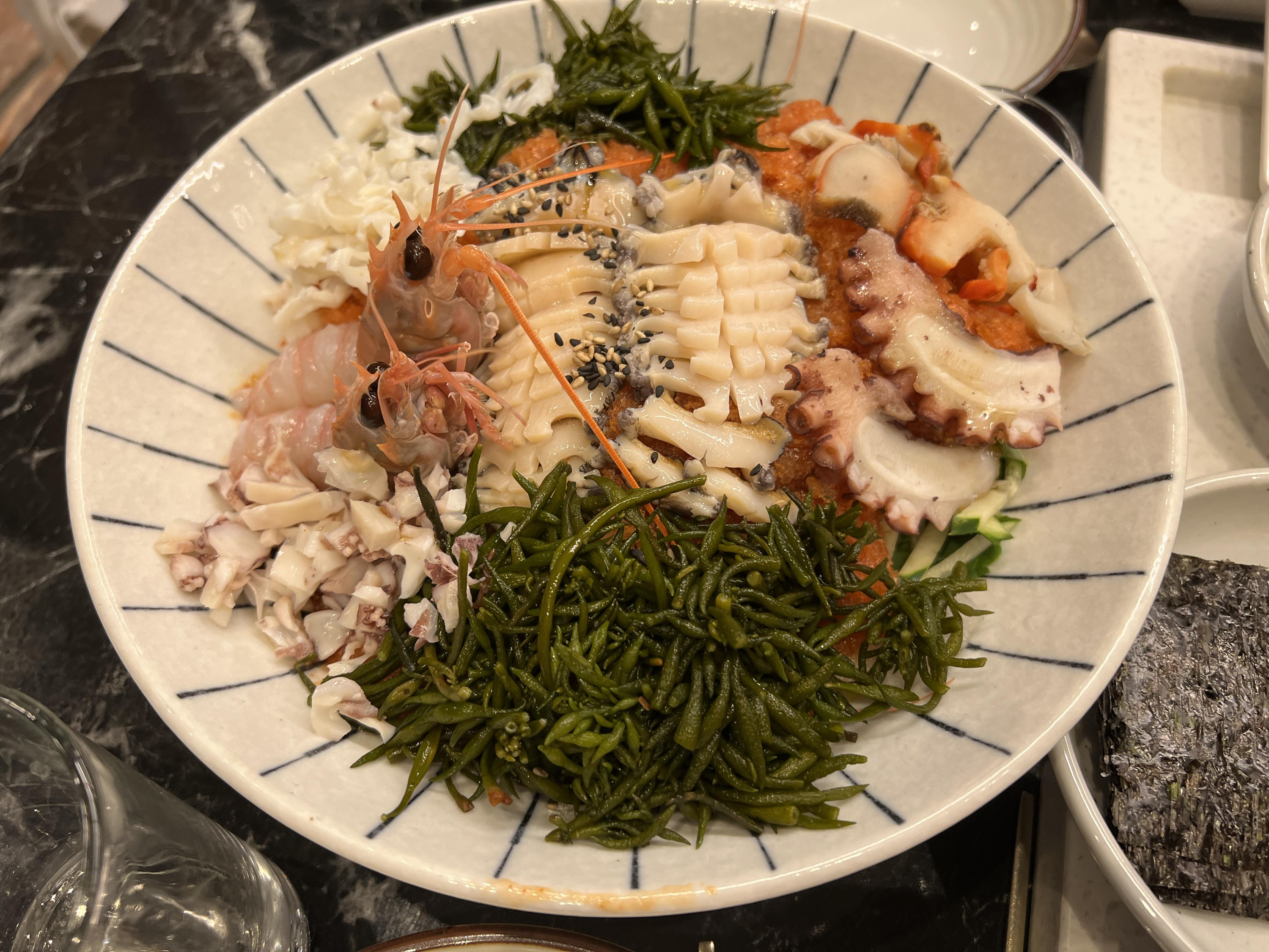 양이 너무 작아서 아 후회 할뻔 했는데 모듬 물회 나오니깐 마음이 좀 풀리더라구요. 이거 없었으면 가격대비 너무 아쉬울뻔 했어요. 전복, 문어, 톳, 새우, 여러가지 엄청 들어 있어요.