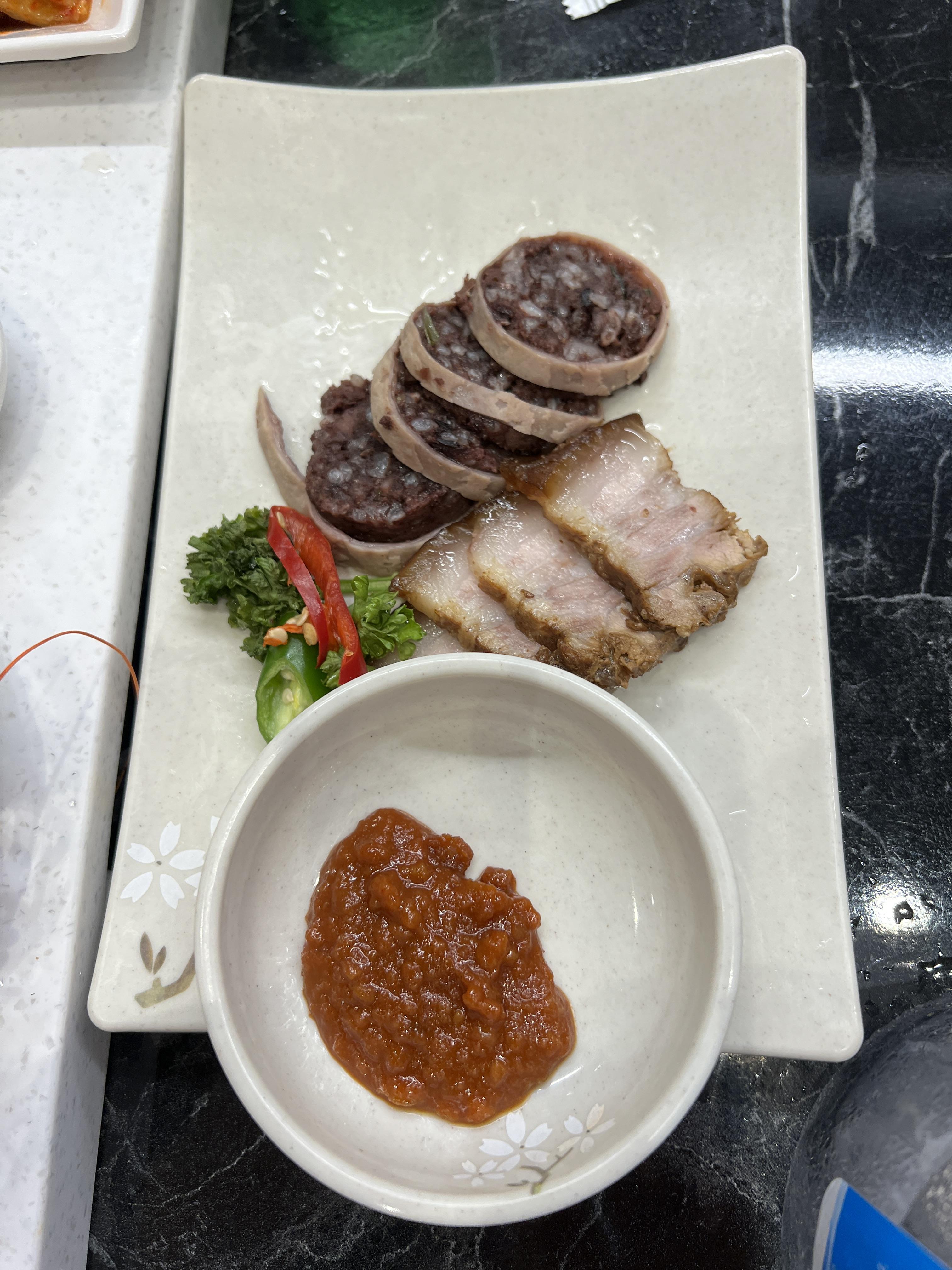 먹다보니깐 돔베고기랑 막창순대가 나와요.