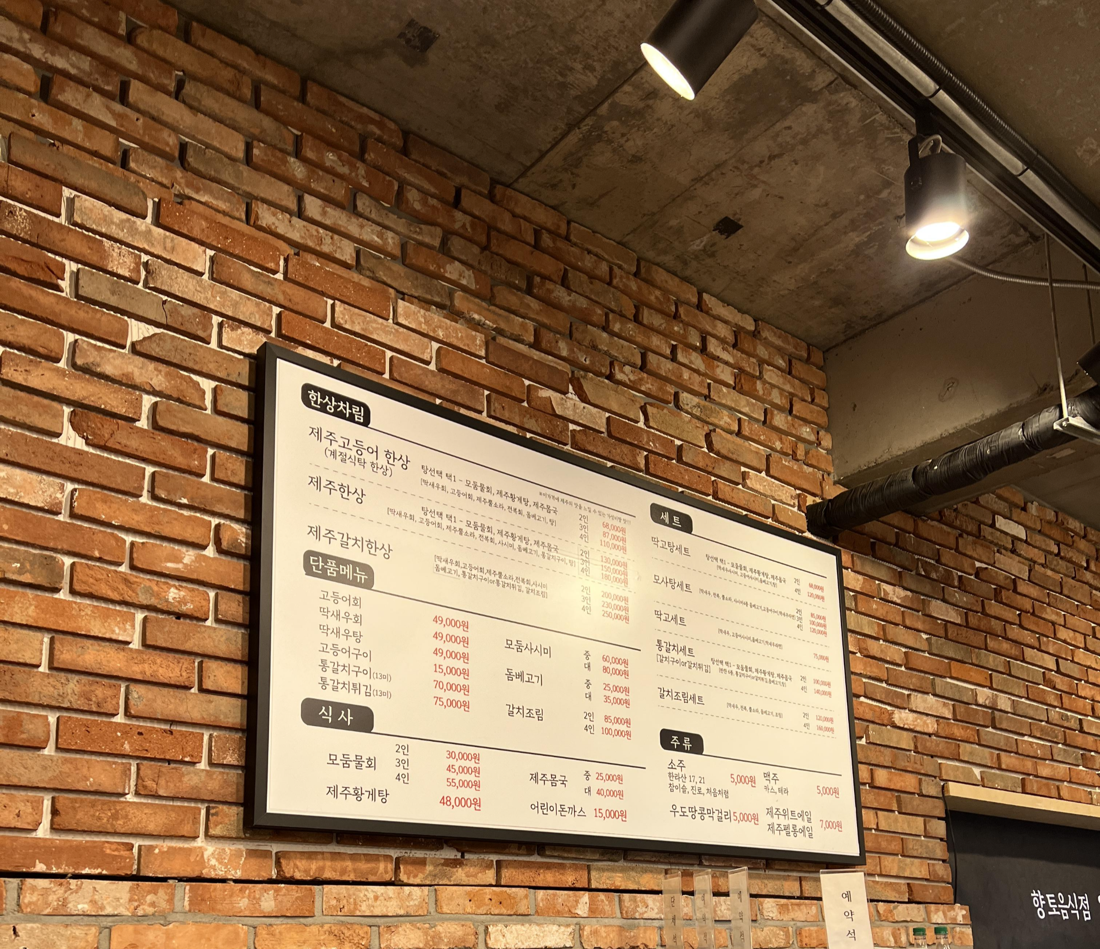 함덕해수욕장 앞엔 제주시만큼 유명한 맛집들이 너무 많아서 근데 늦은 시간에는 갈만한 곳이 생각보다 없어서 검색을 하다가 보니깐 계절식탁은 좀 늦게까지 하고 고등어회, 딱새우회, 여러가지를 한상에 먹을 수 있는 곳이더라구요.