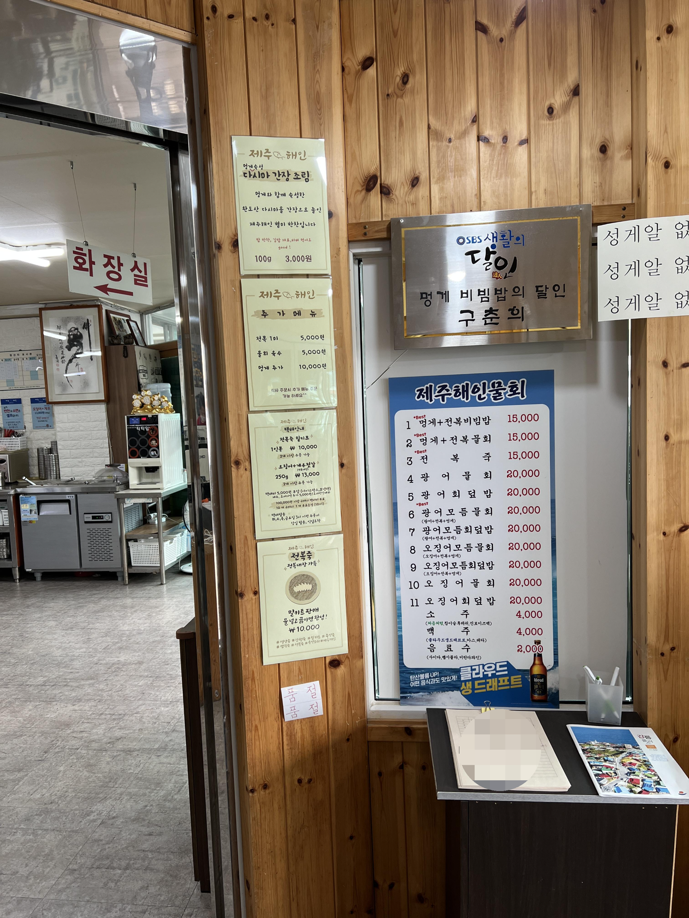 항구 끝에 딱 자리 잡고 있는데 생활의 달인에 출현한 구춘희님이랑 관련이 있는거 같더라구요.