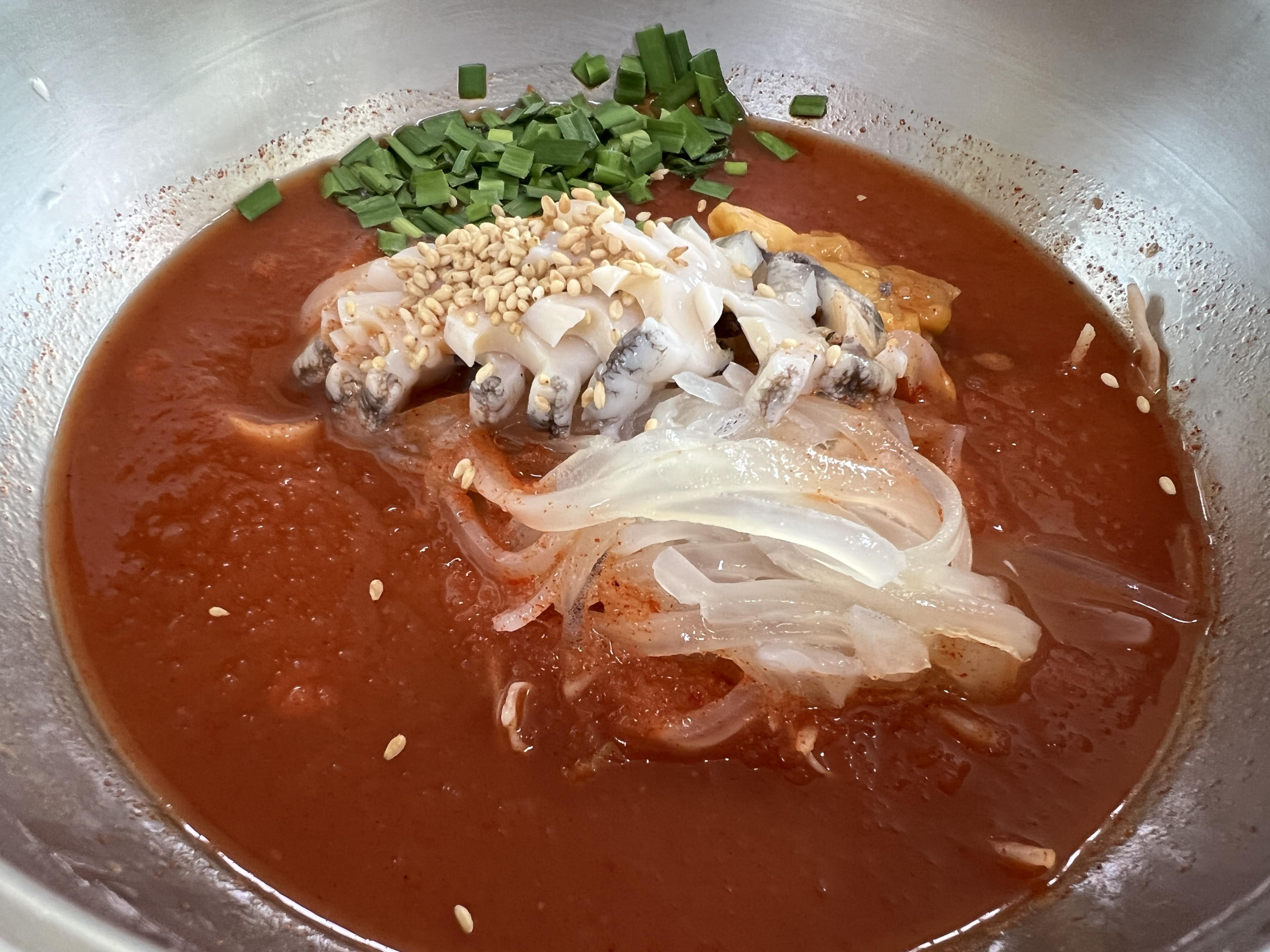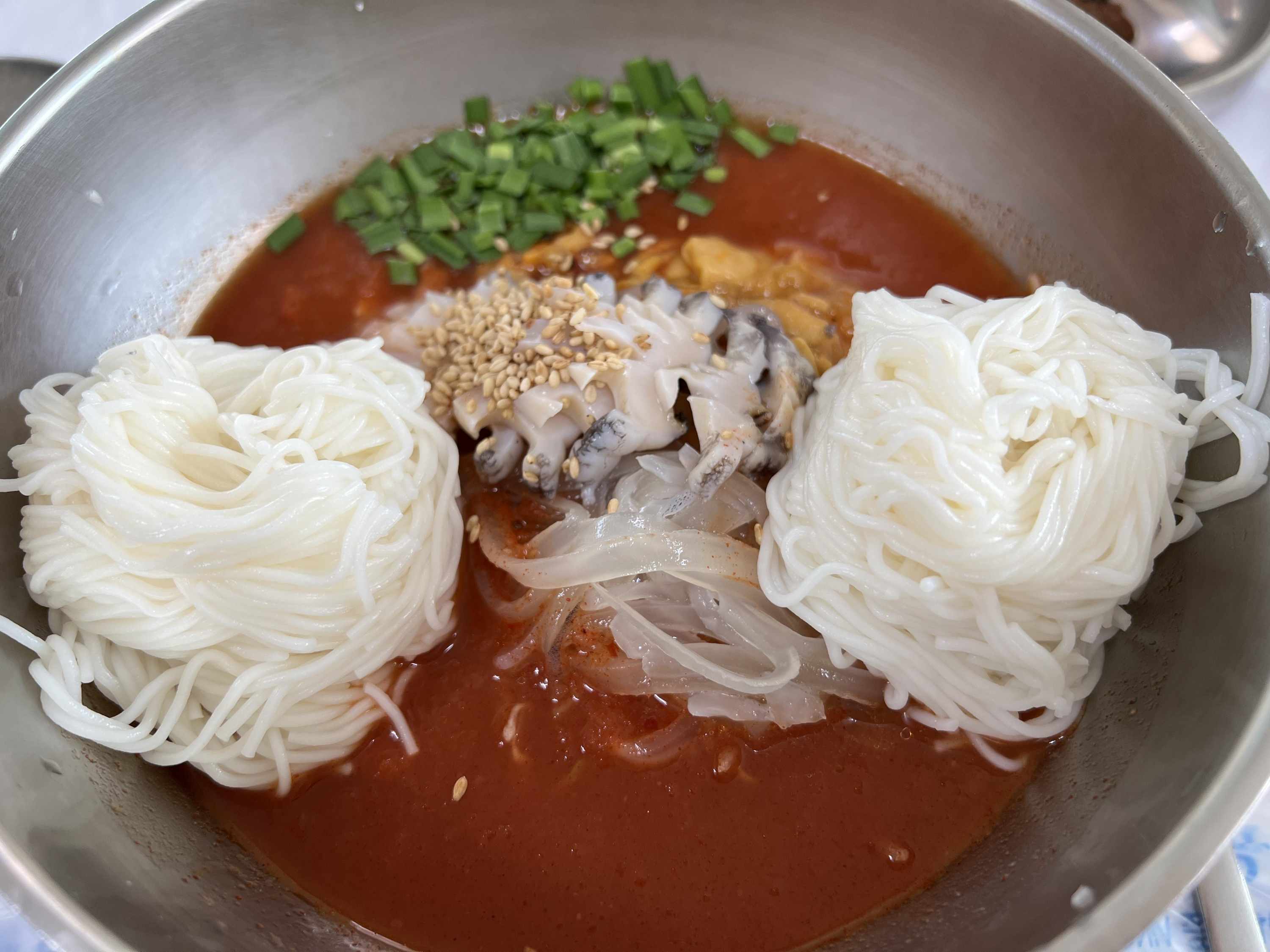 처음에 소면을 2개 넣어서 먹었는데 물회가 이렇게 맛있는거였나요? 흡입을 했네요.