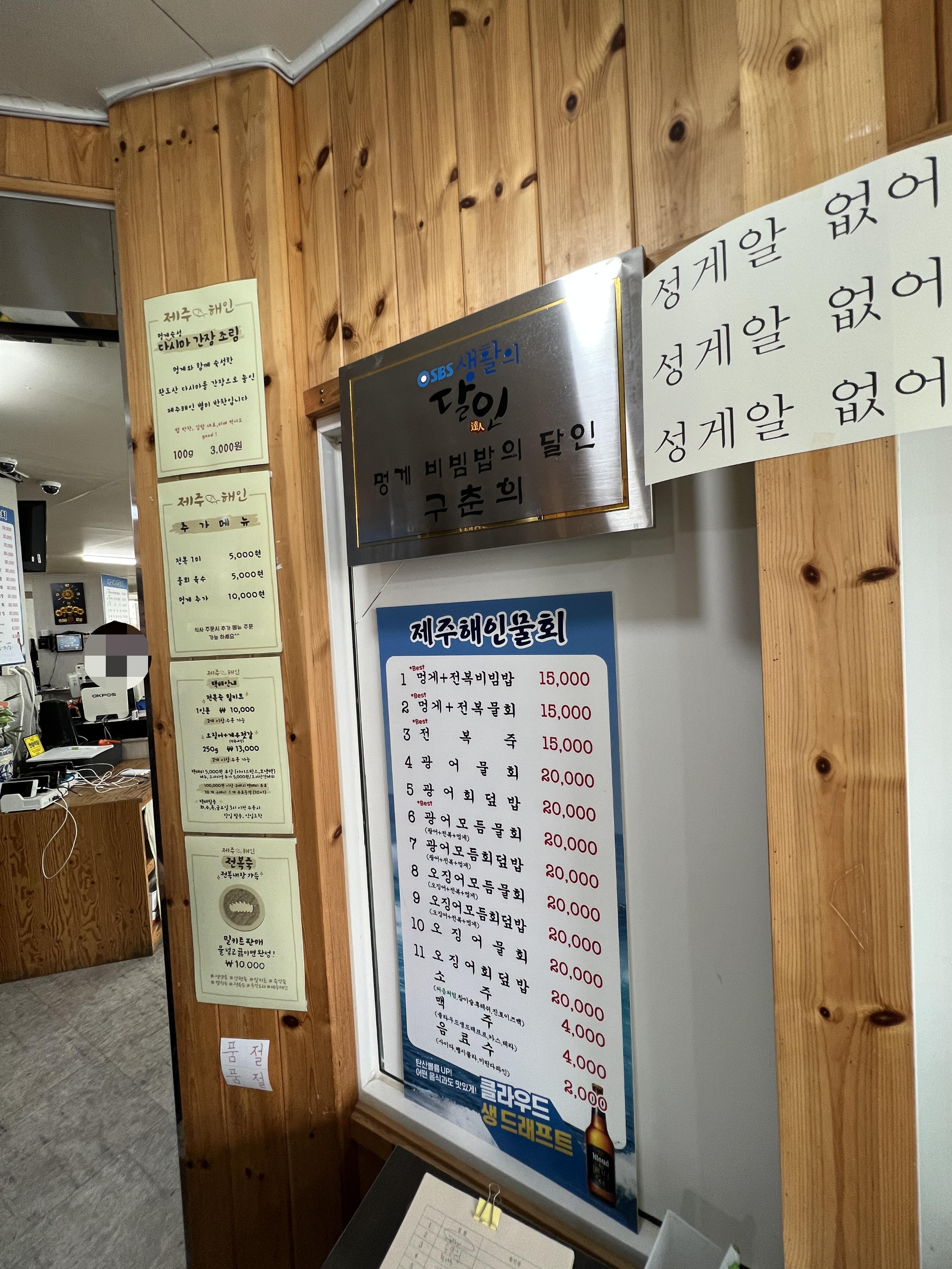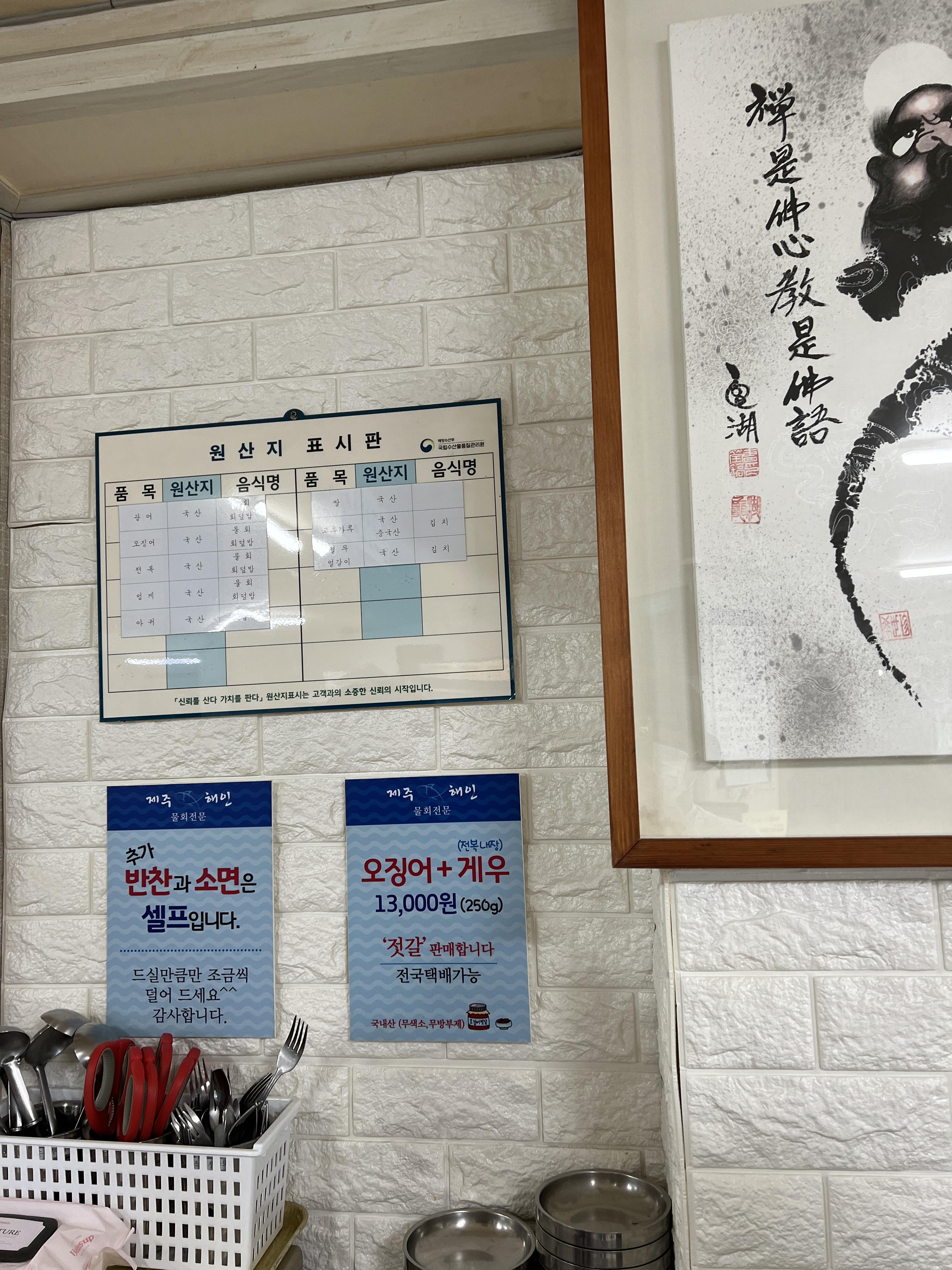원산지 표시도 잘되어 있어요. 광어 오징어 멍게 전복 국산이더라구요.