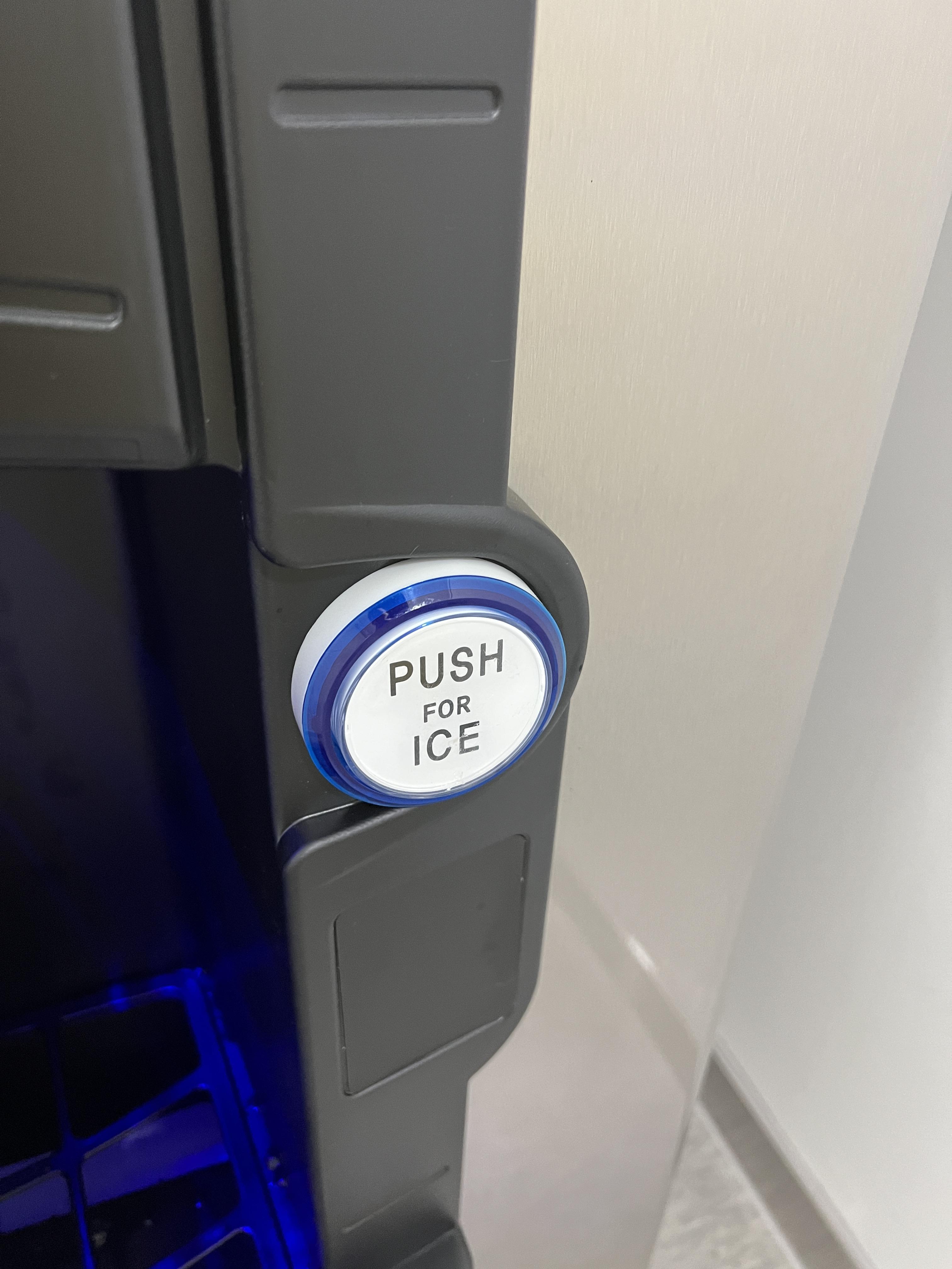 통을 내려놓고 푸쉬 버튼을 누르면 얼음이 쏟아져 나와요.