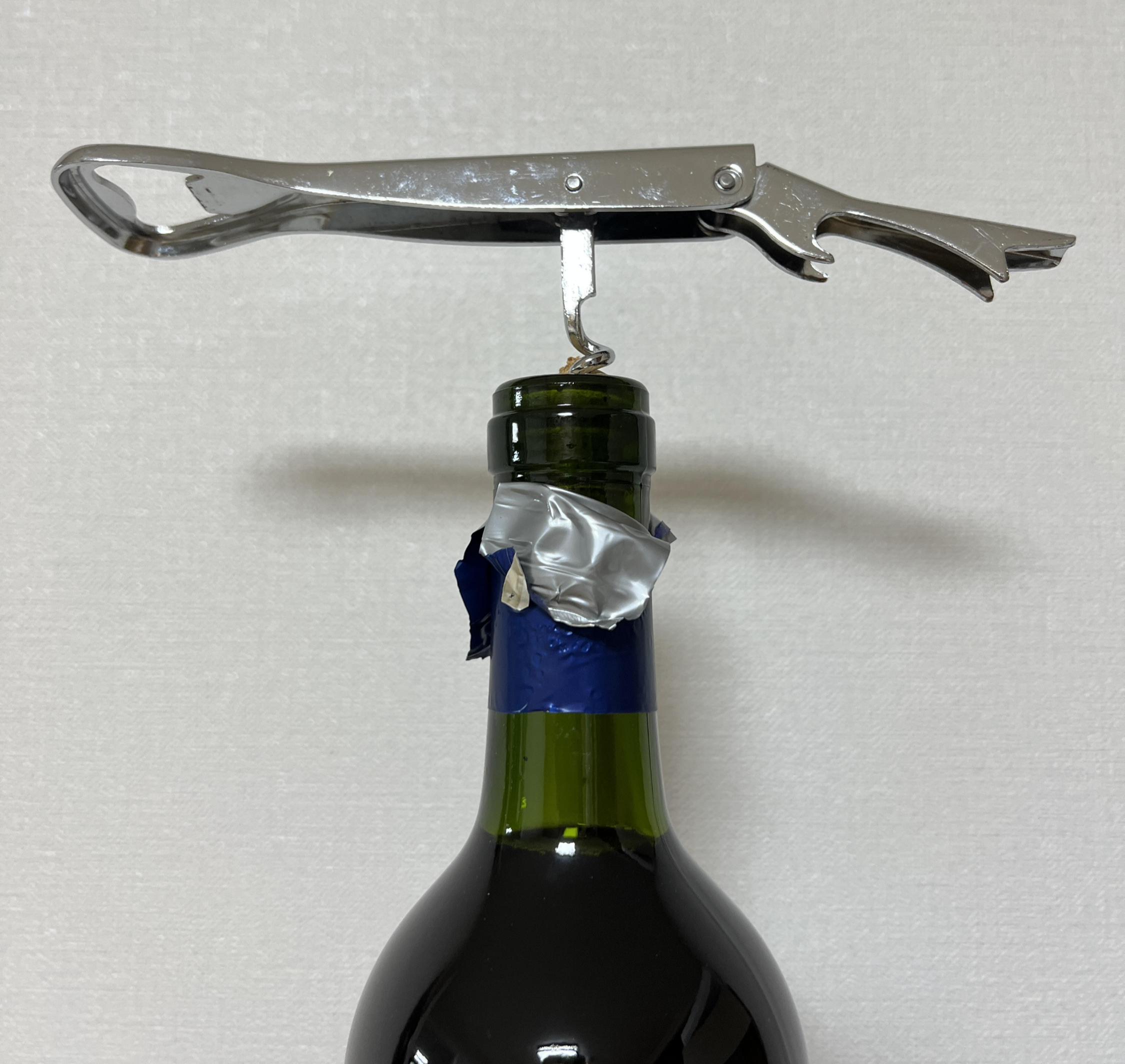 오랜만에 먹어서 와인 따개가 어디 있는지 찾아보니깐 이게 있어서 바로 돌려서 넣었어요.