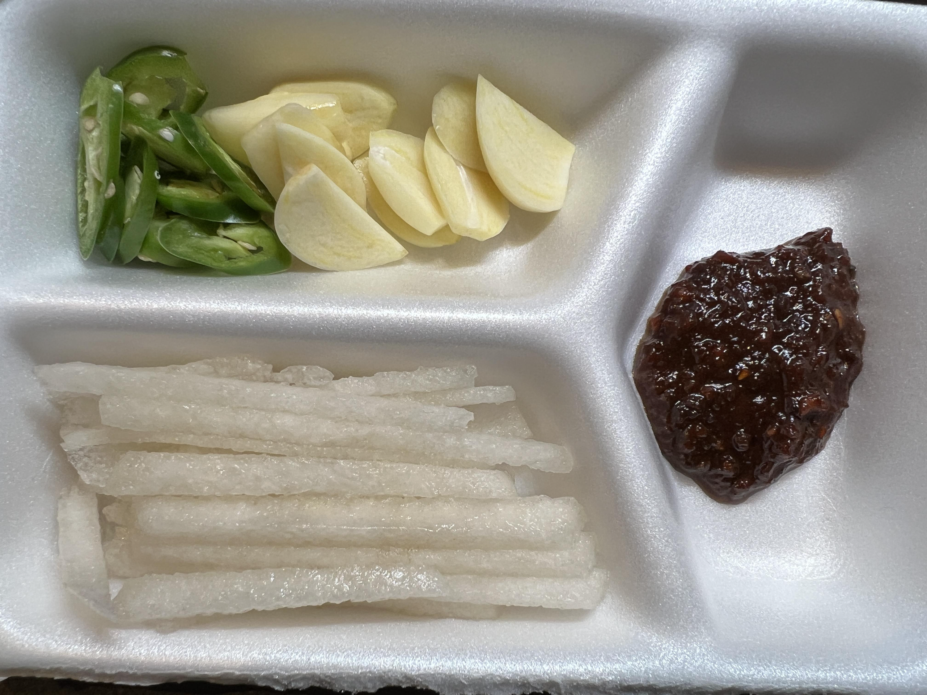 배도 이렇게 따로 고추, 마늘, 쌈장 이렇게 담겨 있어요.