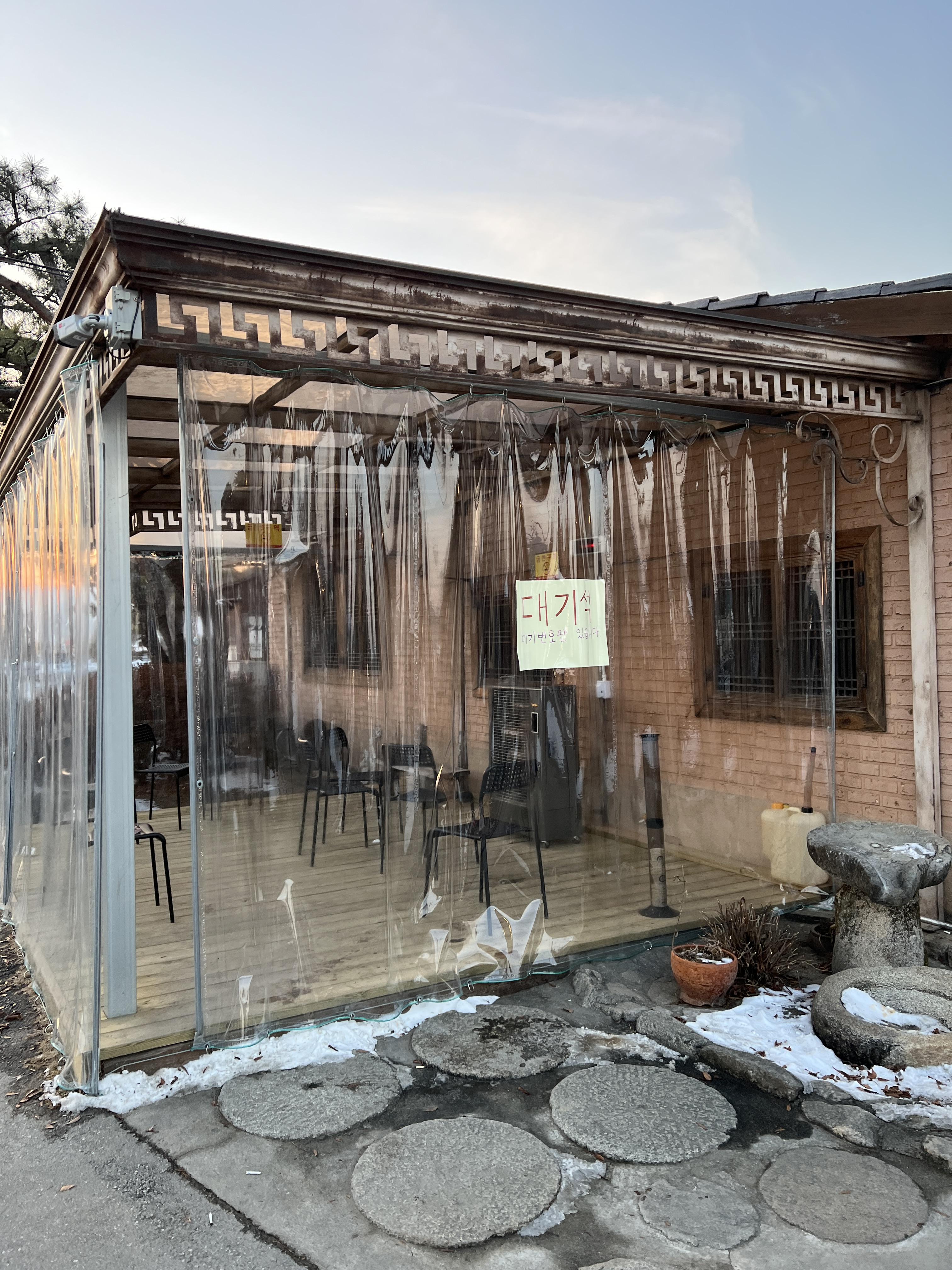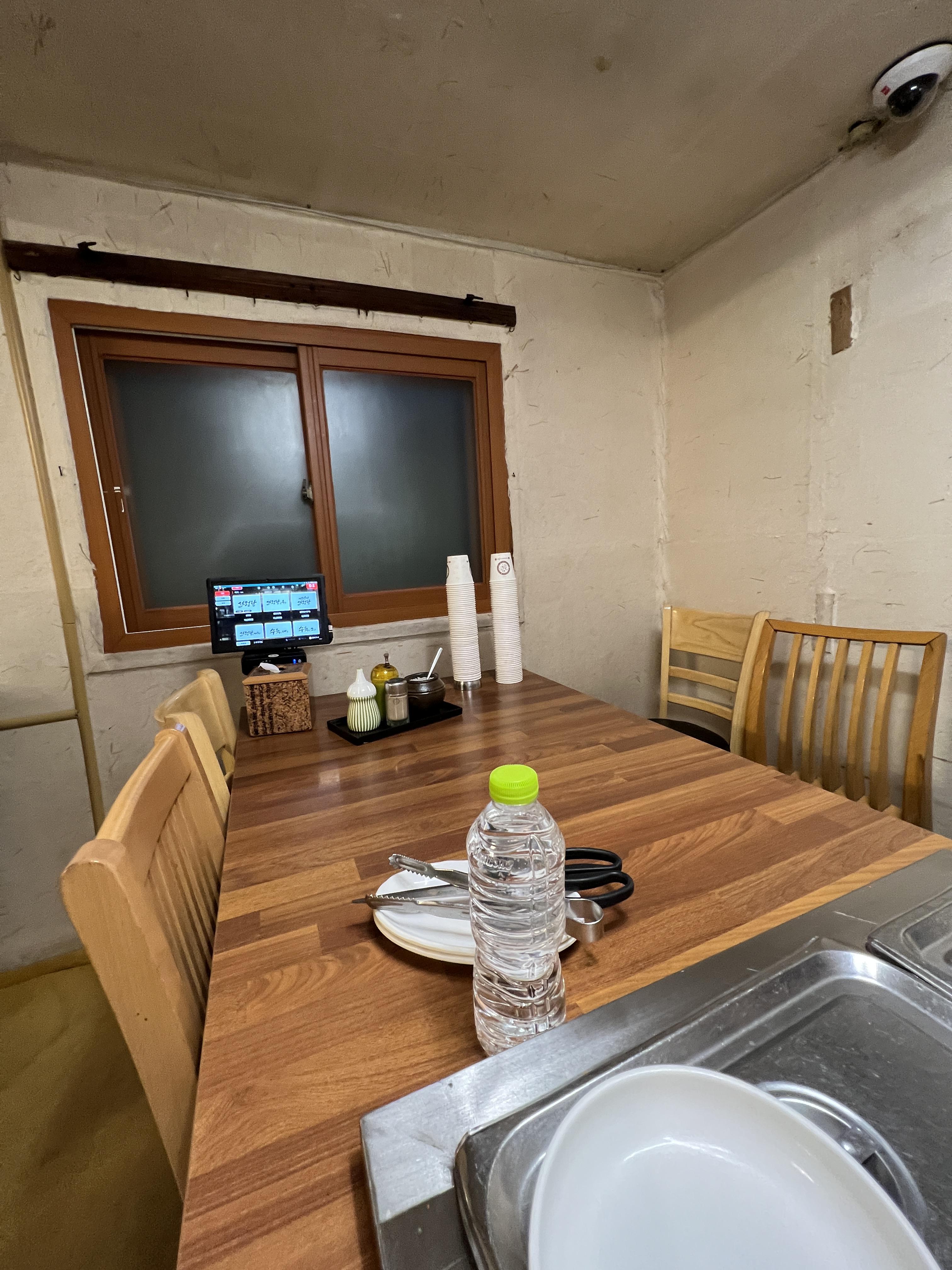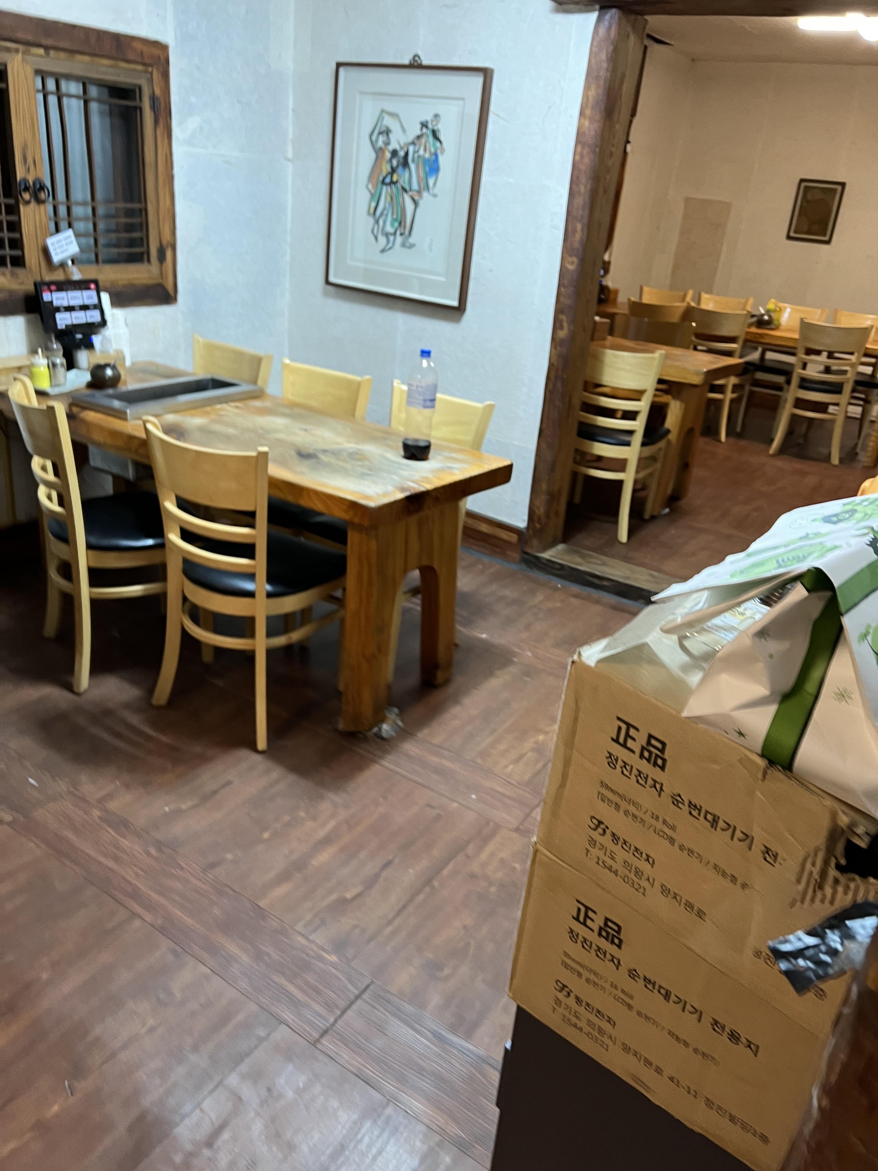 식당은 가정집 구조로 가운데 마당처럼 공간에 테이블이 있고 양쪽 곳곳에 방처럼 테이블과 바닥 자리가 준비 되어 있어요.빈자리에 가서 앉으시면 되요.