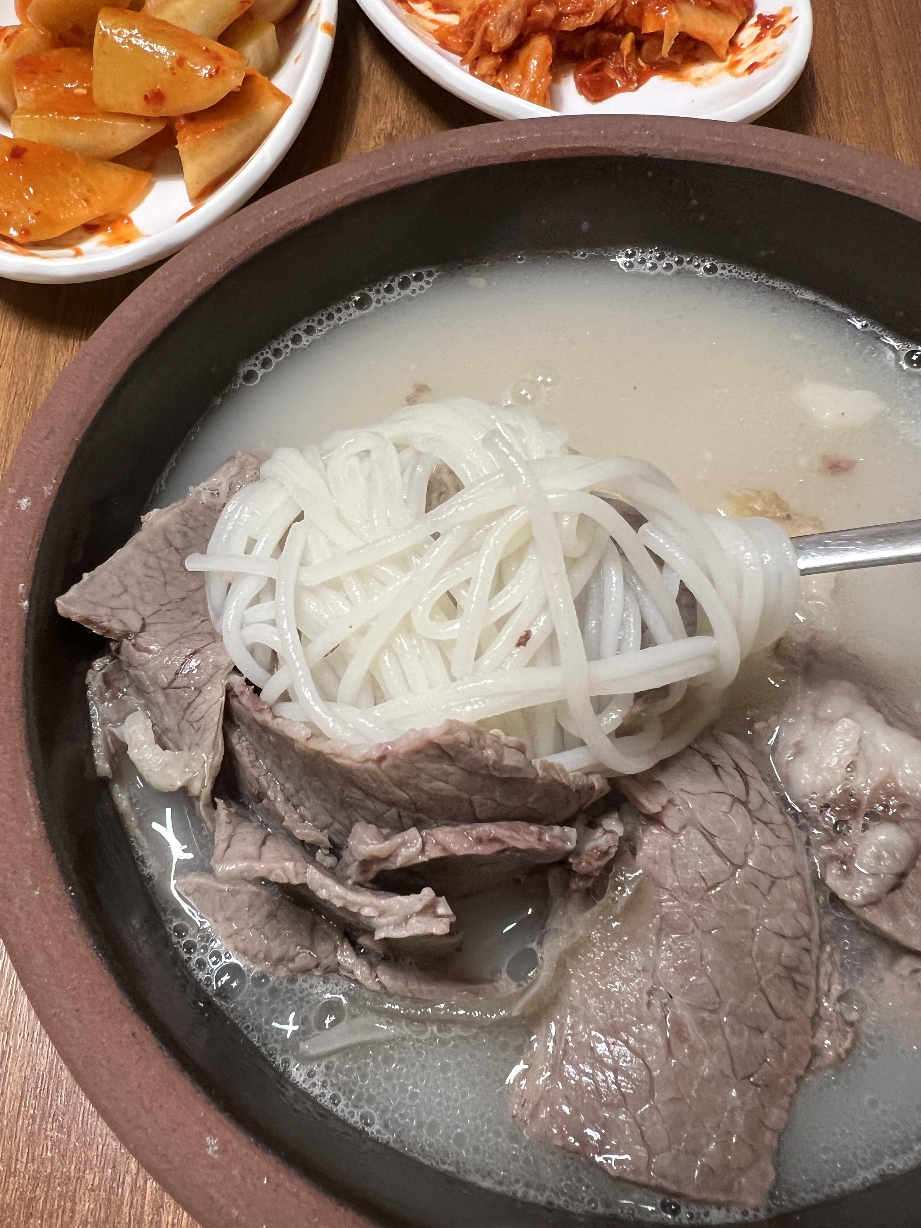 안에 고기가 많이 들어 있어요. 오랜만에 방문이라서 더 맛있겠더라구요. 얼마전에 서울에 있는 이문설농탕이랑도 조금 비교가 되긴 하는데 여기가 살짝 기름이 좀 더 많네요.