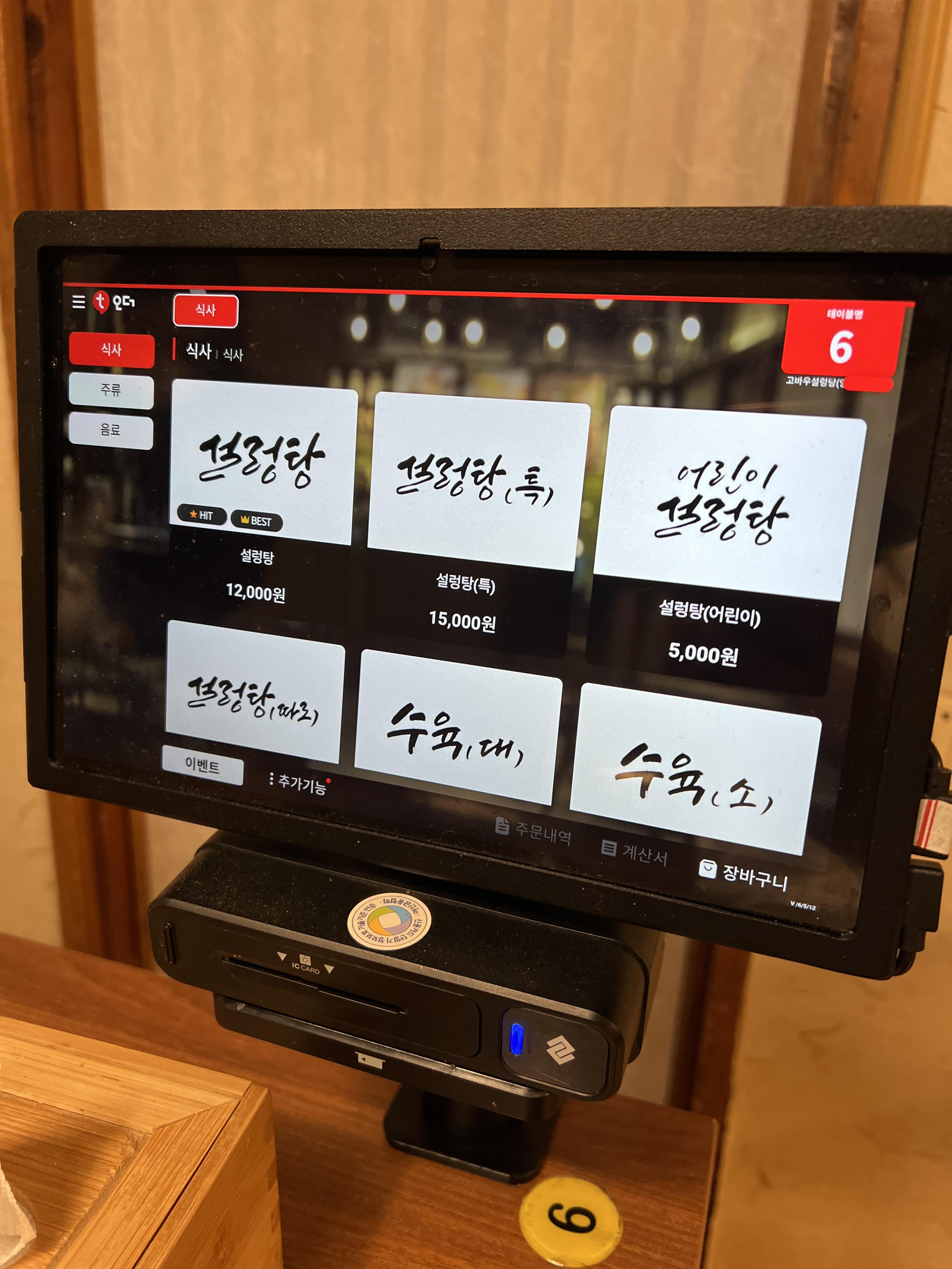 주문은 이렇게 테이블마다 테블릿이 있어서 이걸로 주문 하면 되요.