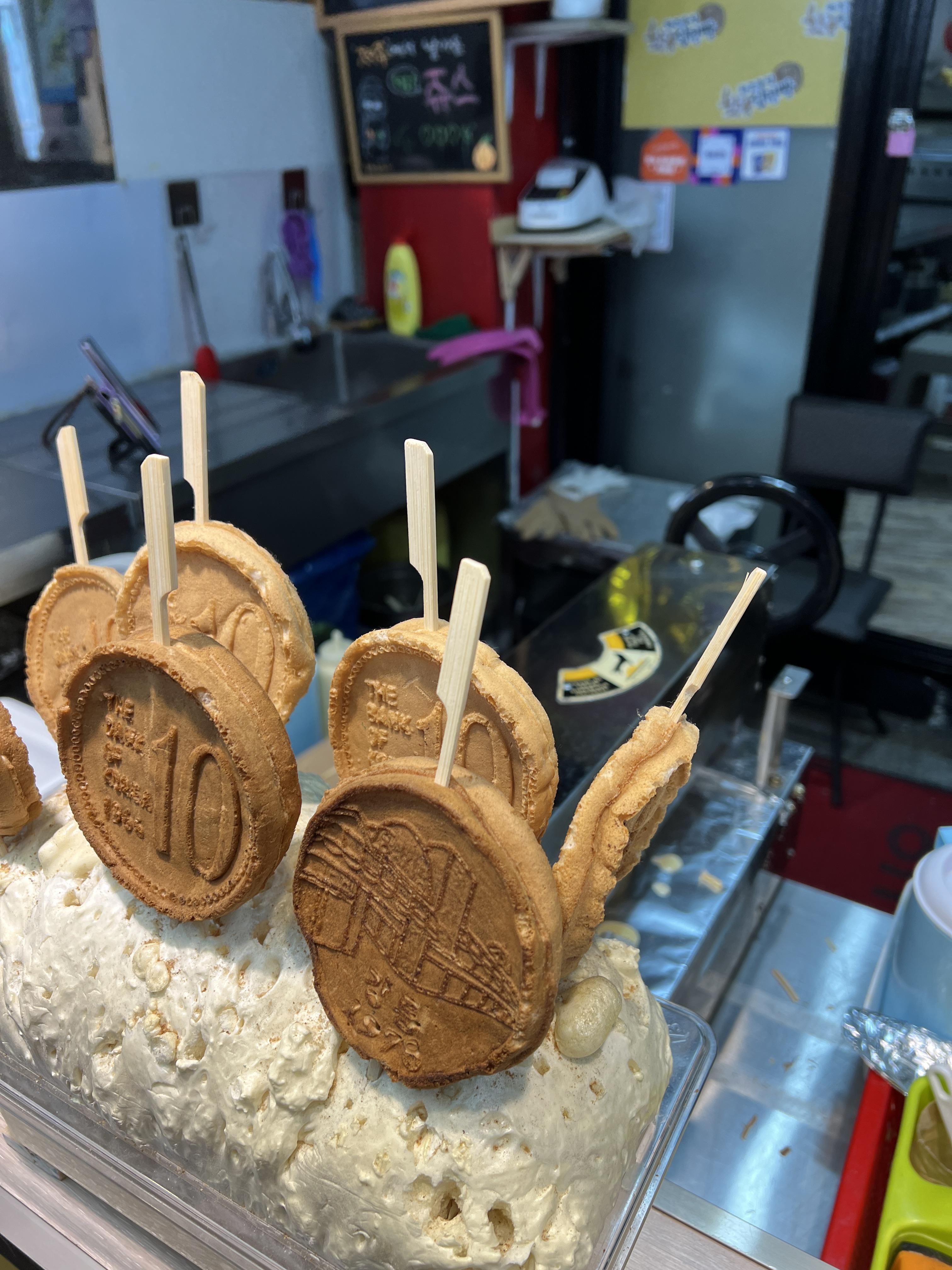 십원 모양에 빵이라고 해야할까요? 설명하기 어렵네요. 사장님 이야기로는 경주에서 먼저 시작 됐다고 하시더라구요.