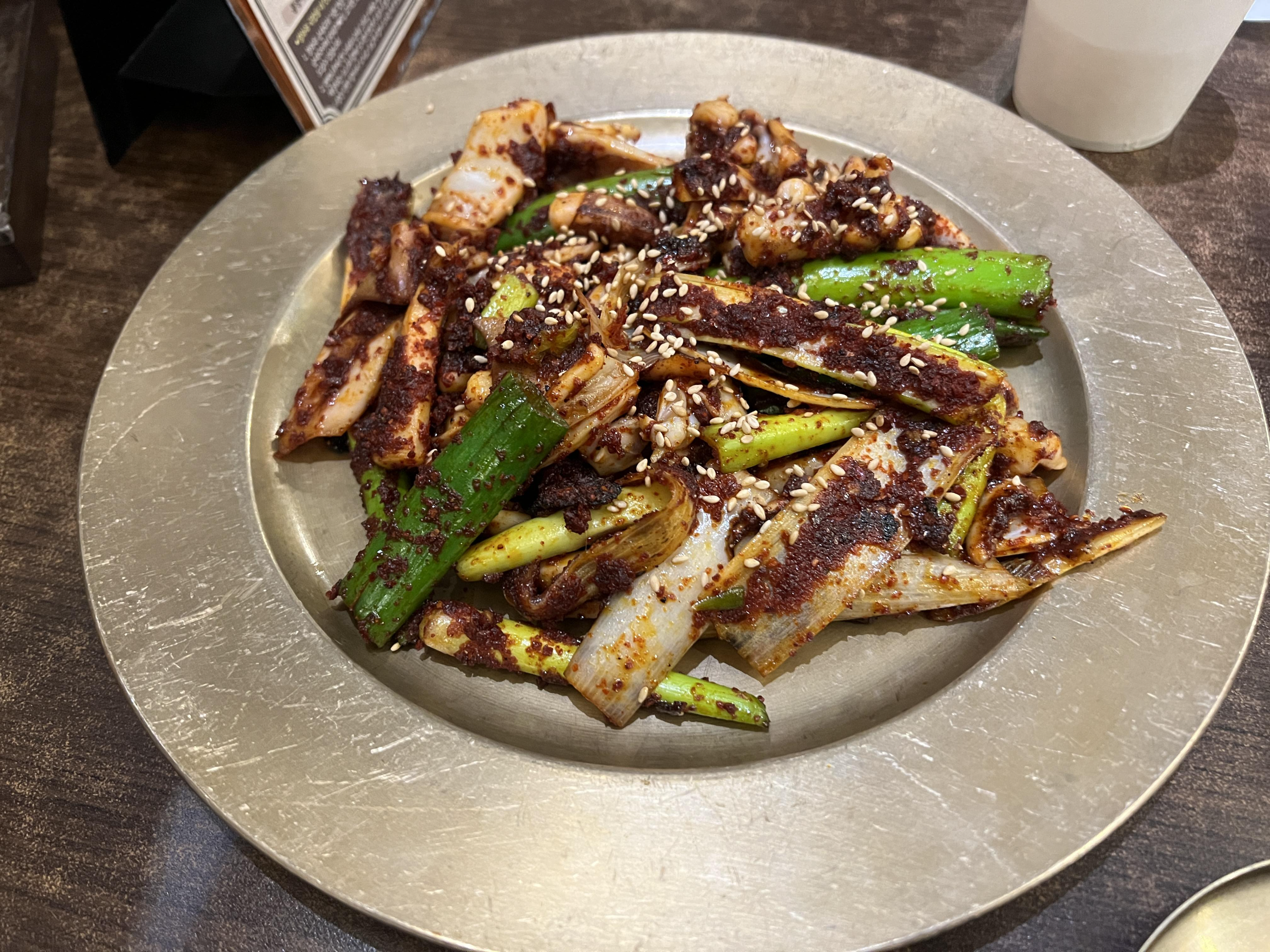 오징어 무침 같이 나오는데 고춧가루에 해서 팍팍 무친 느낌이라고 할까요? 오징어도 크고 진짜 한입 먹자마자 밥을 왜 시키는지 알겠더라구요.