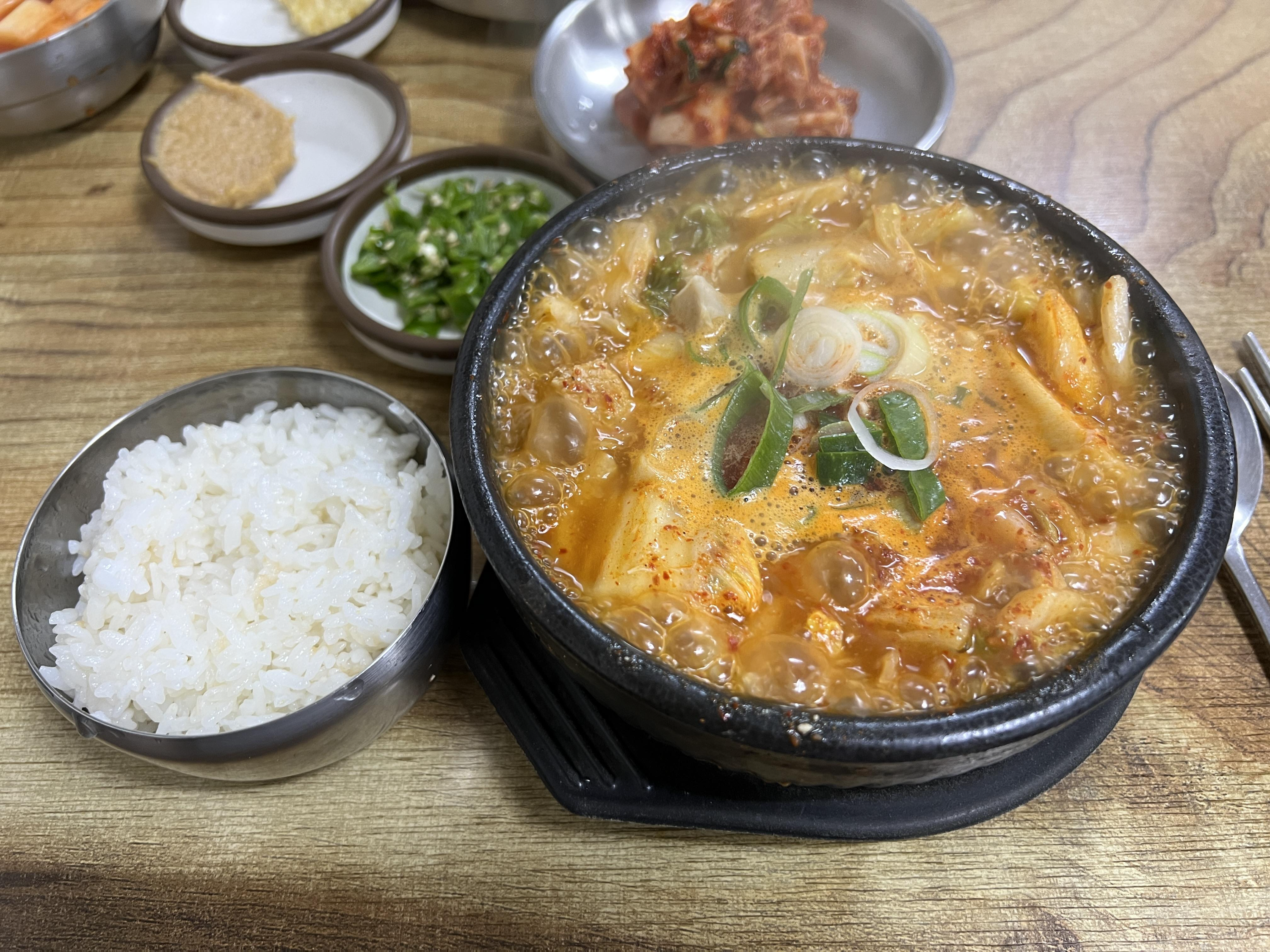 뚝배기에 열기가 너무 뜨거워서 호호 불어서 먹어야되는데 안에 내장이 엄청 많아요.