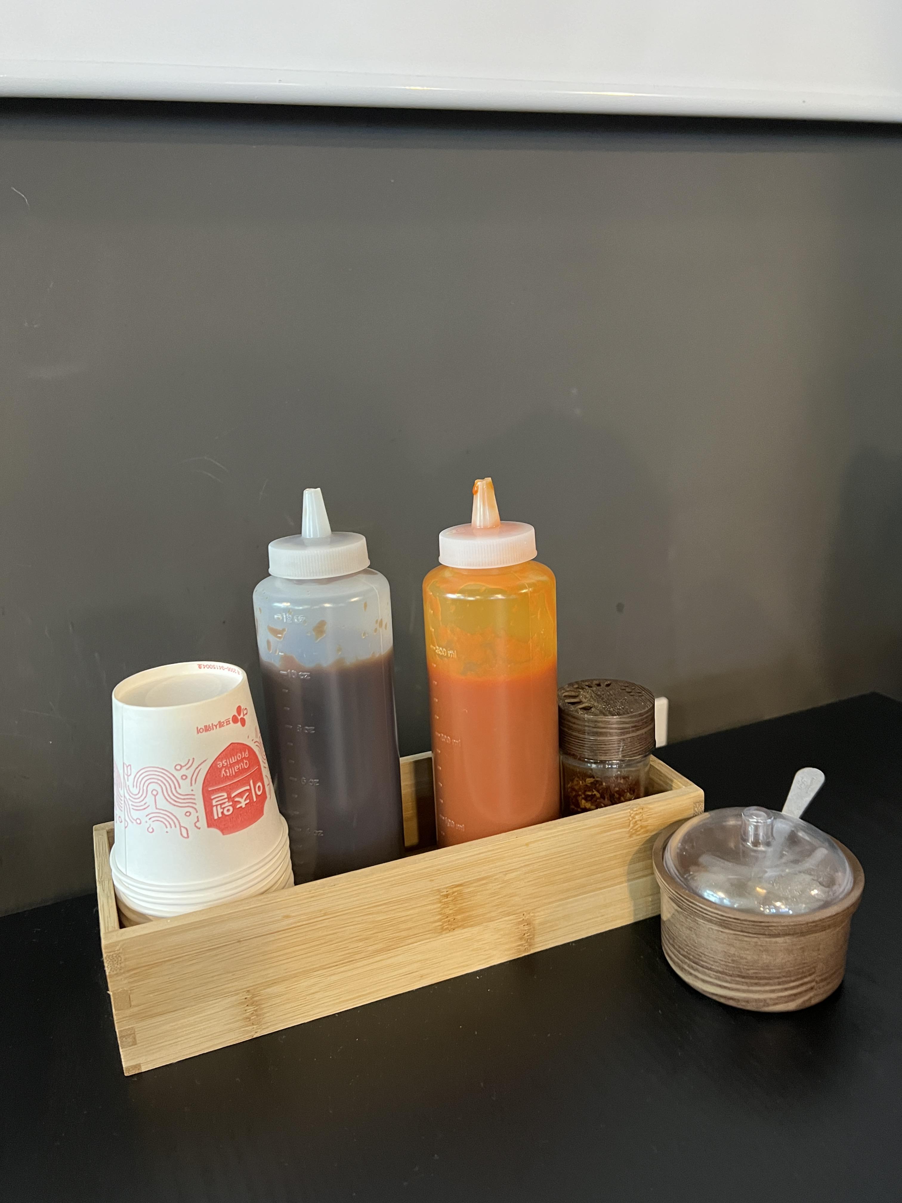 국물도 같이 나오는데 저기 안에 들어 있는 마늘이 느끼함을 잡아주네요. 테이블에도 있긴 한데 식초 같은 느낌이라고 새콤한거 신거 원하시면 더 넣어서 먹으면 될 거 같아요.