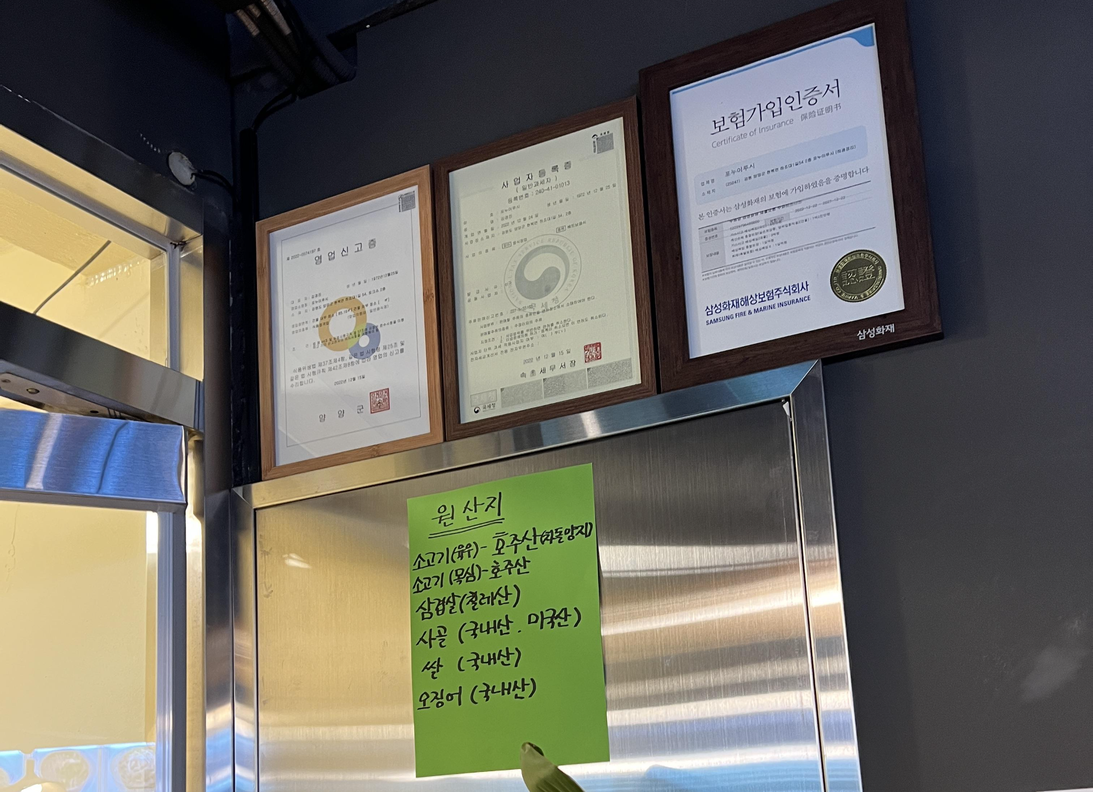 원산지표시도 잘되어 있는데 소고기 유우 호주산 차돌양지, 소고기 목심 호주산, 삼겹살 칠레산, 사골 국내산 미국산, 쌀 오징어 국내산 이렇게 표시 되어 있네요.
