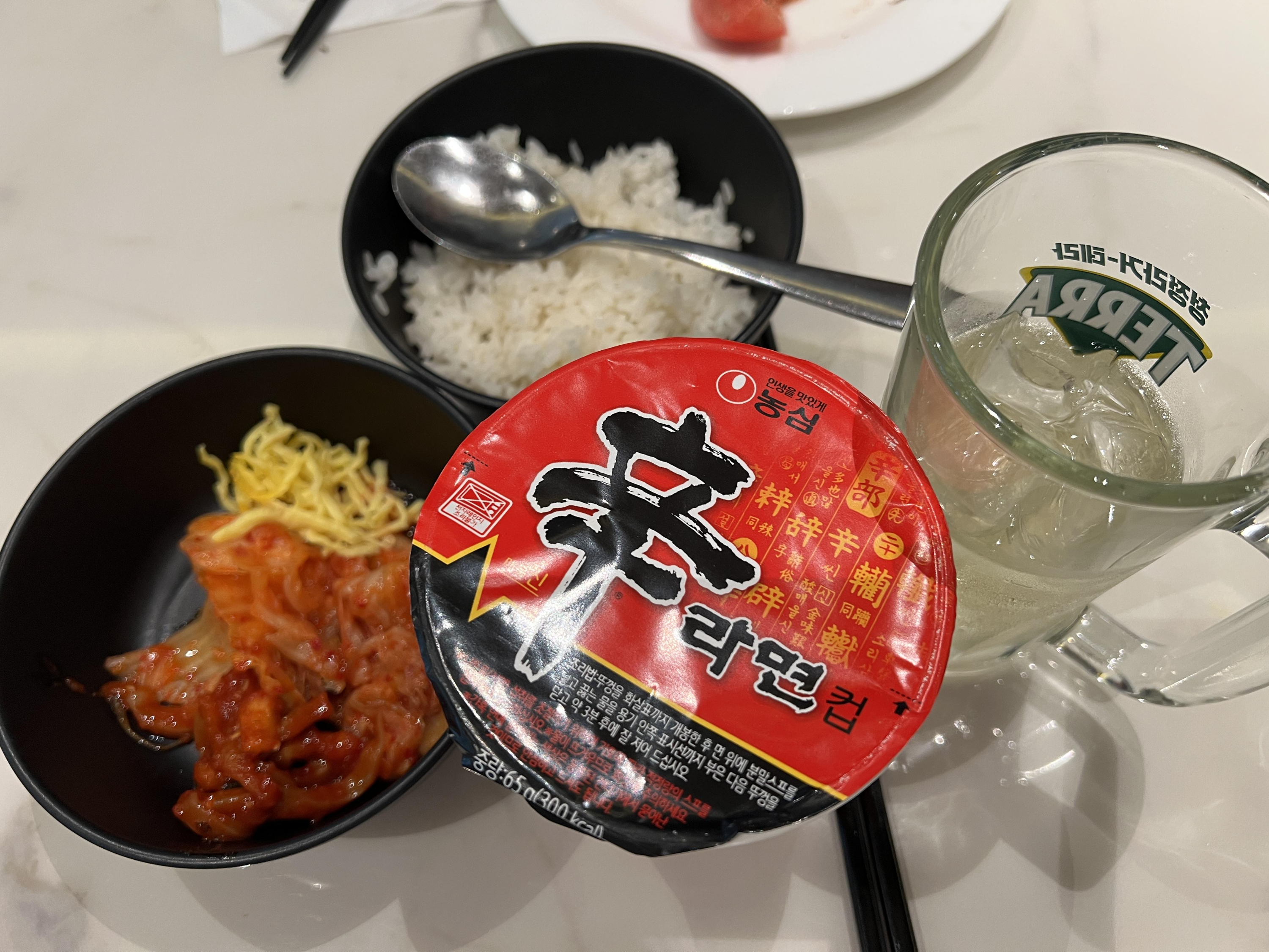 마지막 컵라면 안먹으면 아쉬우니 컵라면까지 마무리 했네요.