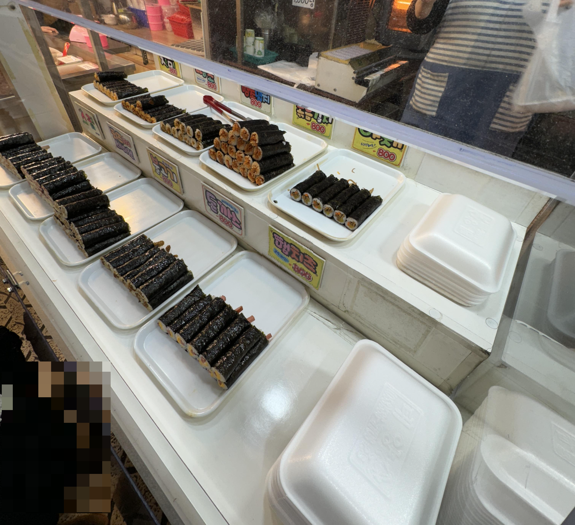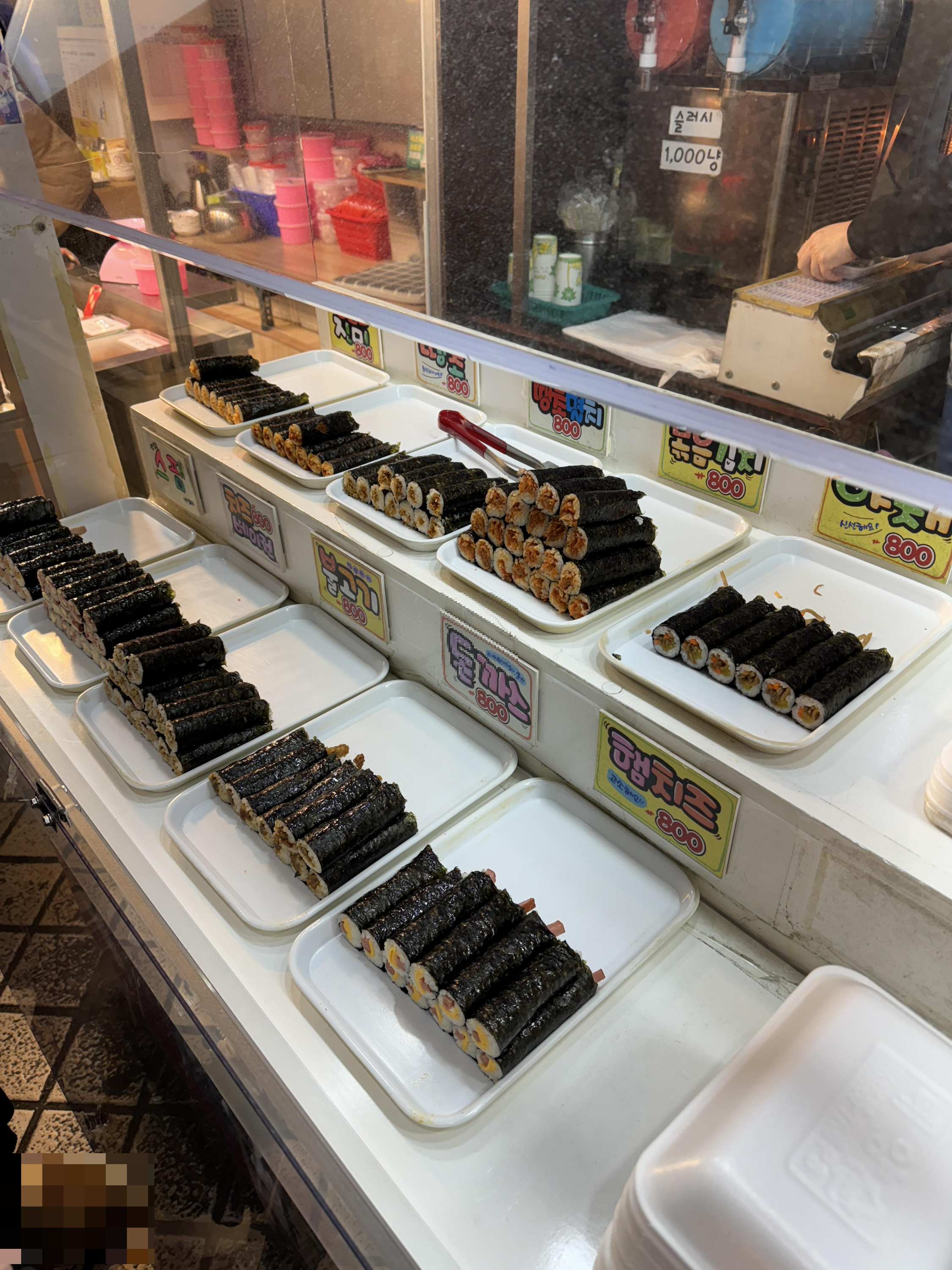 여기 골목에 꼬마김밥 파는곳이 총 4곳정도 있었어요. 어디서 살까 하다가 그나마 사람이 덜 한 곳으로 골랐어요.