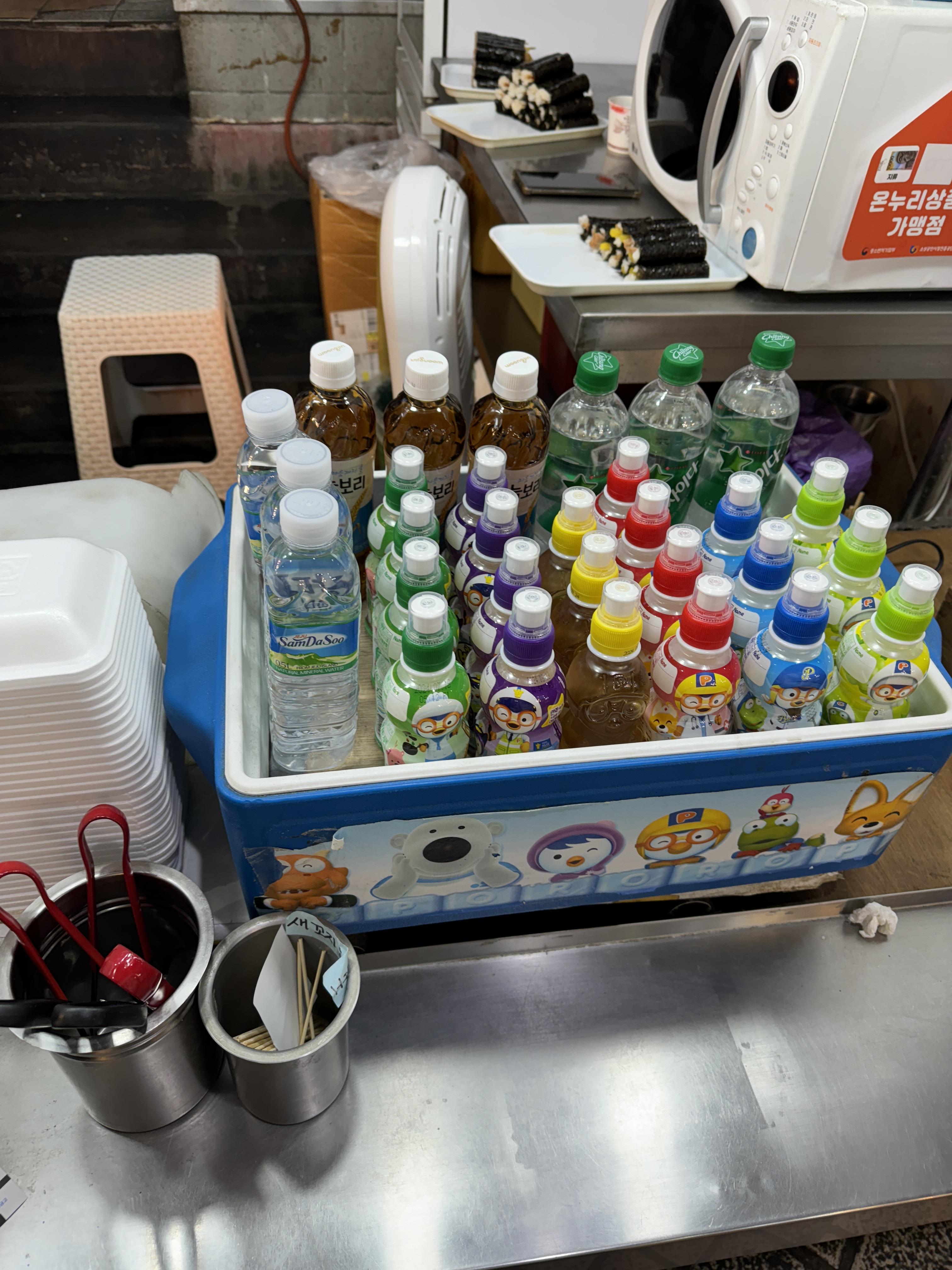 음료랑 물, 뽀로로 음료도 있고 바로 먹을 수도 있나봐요.