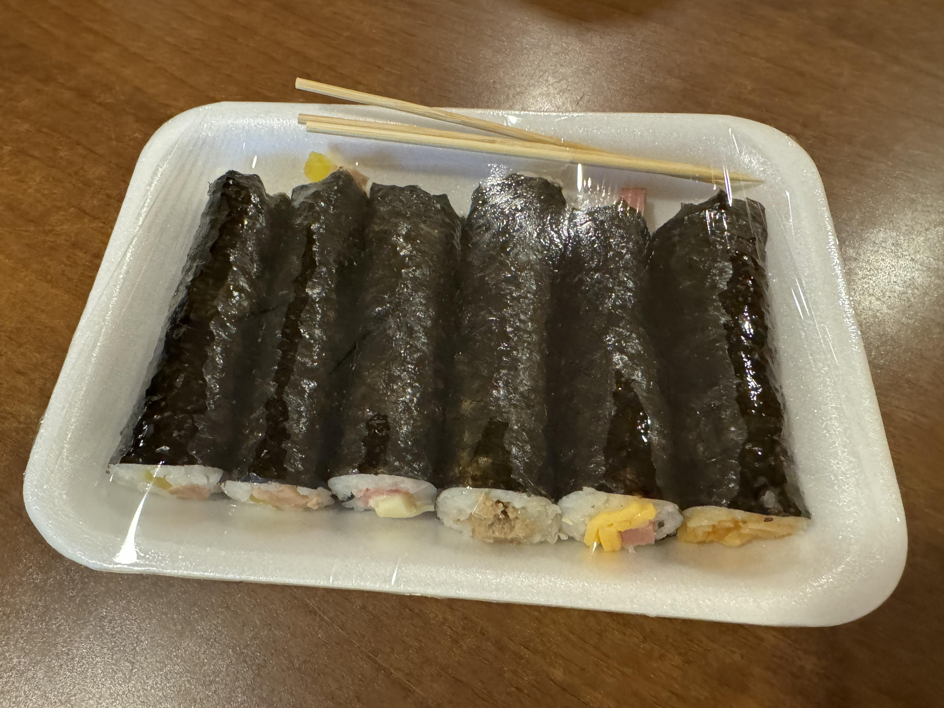 평소에 자주먹던 꼬마김밥보다 사이즈는 조금 작다고 할까요?
