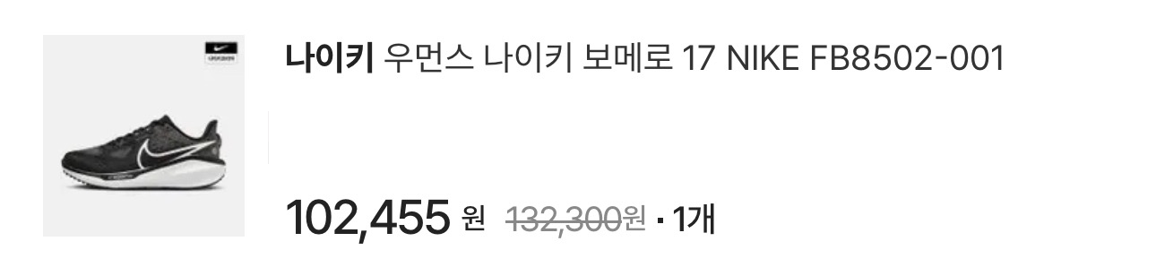 어떤걸 사야할지도 사실 모르겠고 여러가지 신어봐야한다는데 검색하다가 나이키 보메로 17이 거의 반값에 팔고 있어서 찾아보고 괜찮다고 해서 바로 구입 했습니다.
