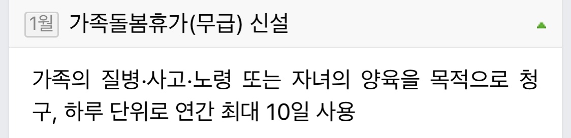 > 가족돌봄휴가는 하루 단위로 연간 최대 10일을 사용할 수 있습니다