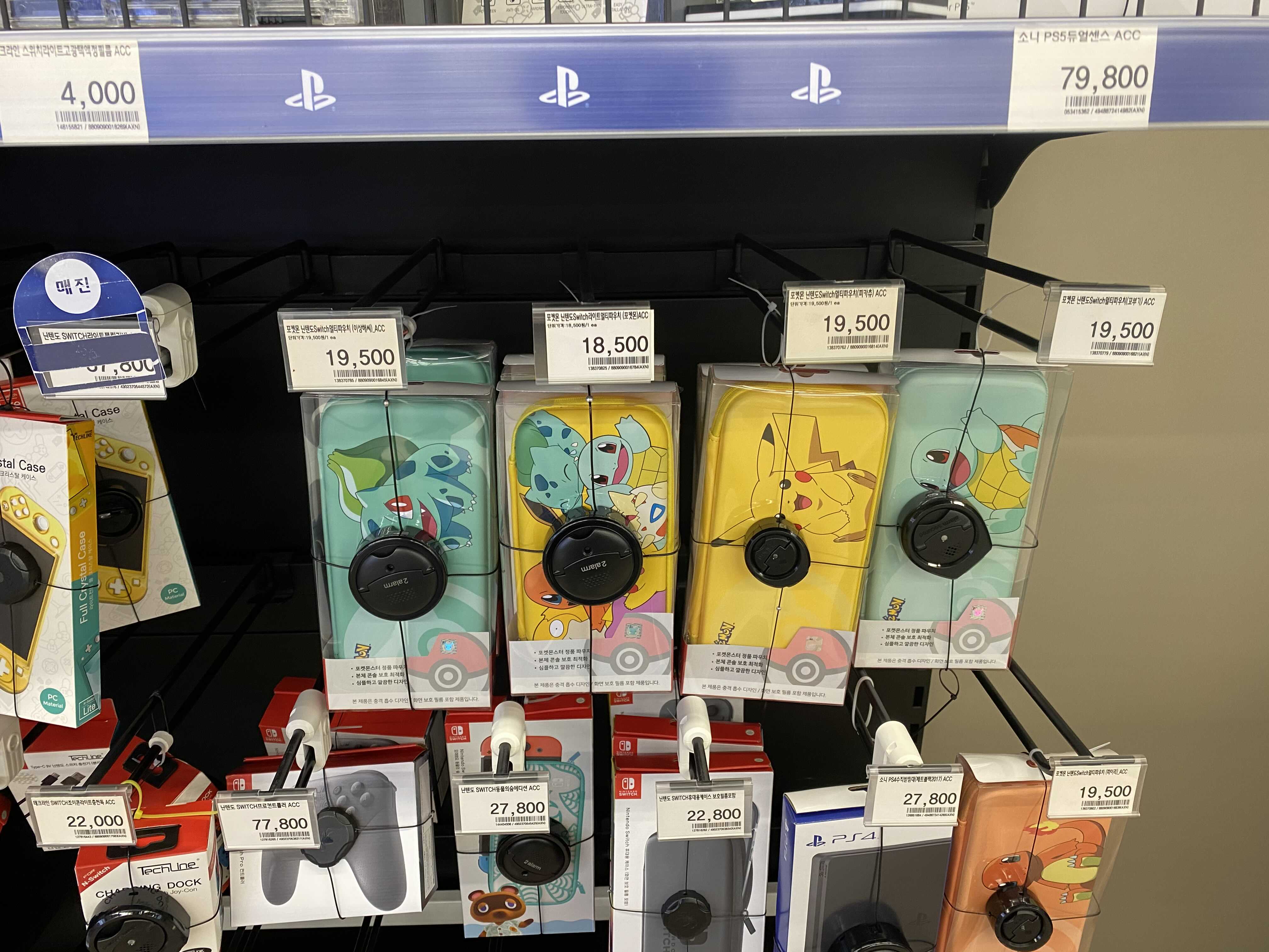 사코슈 포켓몬스터소드실드 조이콘 등 다양한 악세사리 제품도 많았어요.