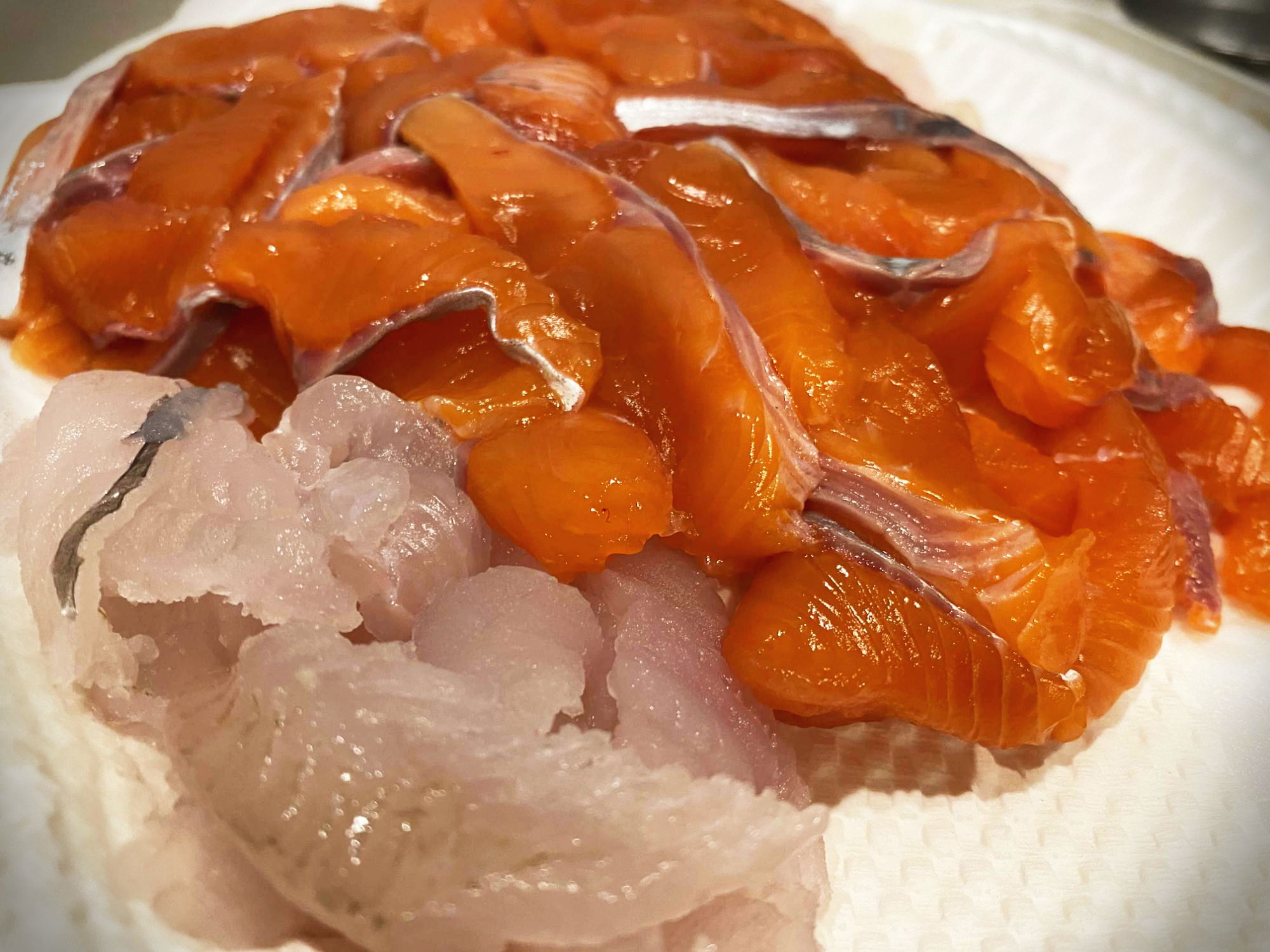바다 송어? 2월이 철이라고 하고 처음엔 몰랐다. 그냥 큰 물고기에 바다송어말고 다른 물고기 이름으로 말하길래 큰거 그냥 주네 하고 2만원짜리 회를 한건데 나중에 알고 보니 회 색깔이 연어랑 같은색? 송어랑 같은색이라서 당황 했다.