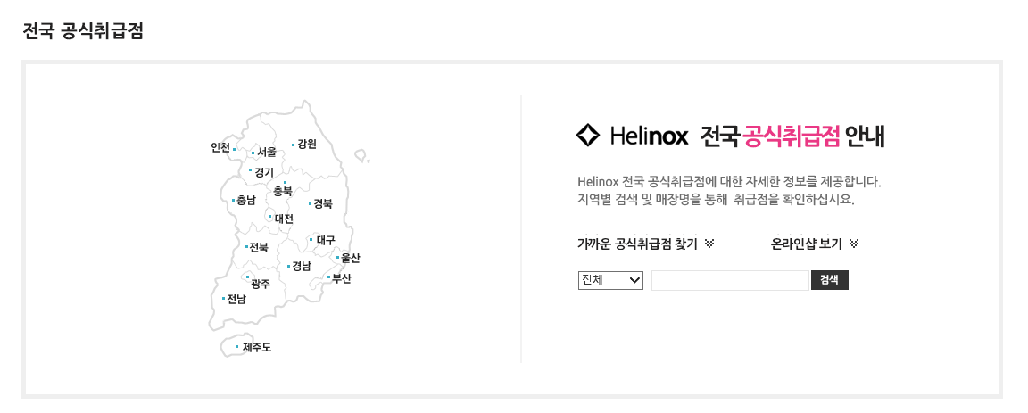 도대체 헬리녹스 전국 공식취급점은 어떤 지역에 어디에 있을까? 라는 궁금증이 생겼다.